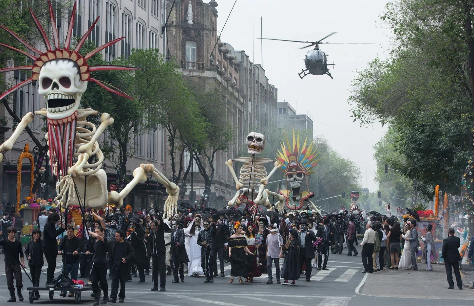 영화 '007 스펙터(2015년 개봉)'의 시작 부분에 멕시코 시티를 배경으로 하는 죽은 자의 날이 화려한 축제 장면이 있습니다.