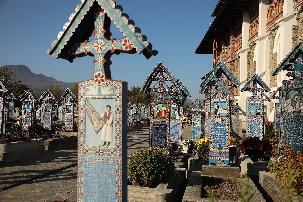 루마니아 북부의 서푼차(Săpânța)마을에 '즐거운 묘지(루마니아어 : Cimitirul Vesel, 영어 : Merry Cemetery)'가 있습니다.