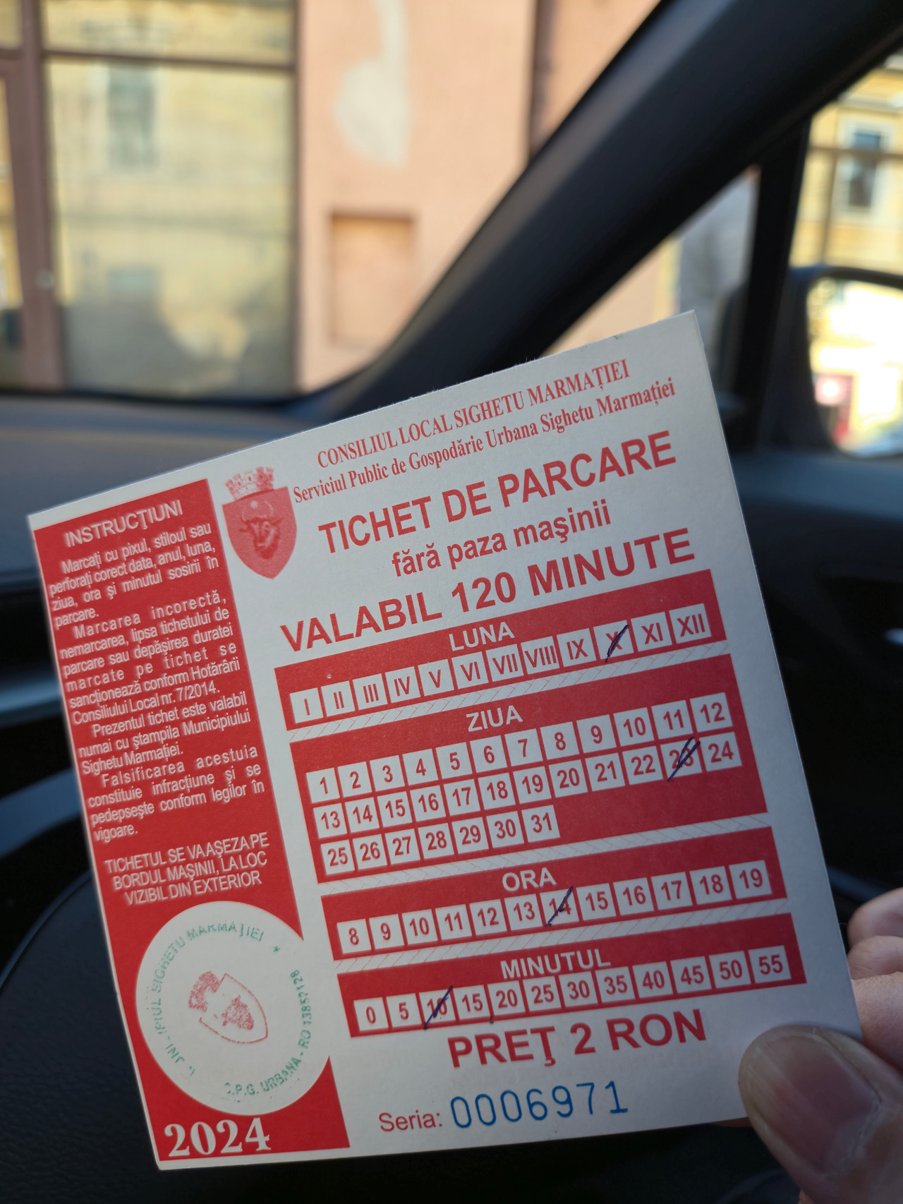 돈을 지불하니 날짜와 시간에 표시가 된 종이를 주는데 그걸 자동차 유리 앞에 놓아두면 됩니다.