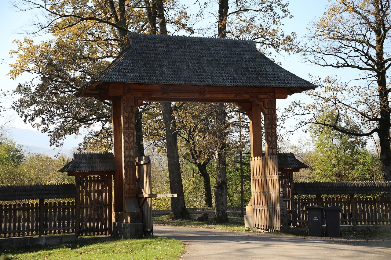 수도원 입구에도 잘게 쪼갠 참나무 너와를 얹은 지붕이 있는 커다란 문이 있습니다.