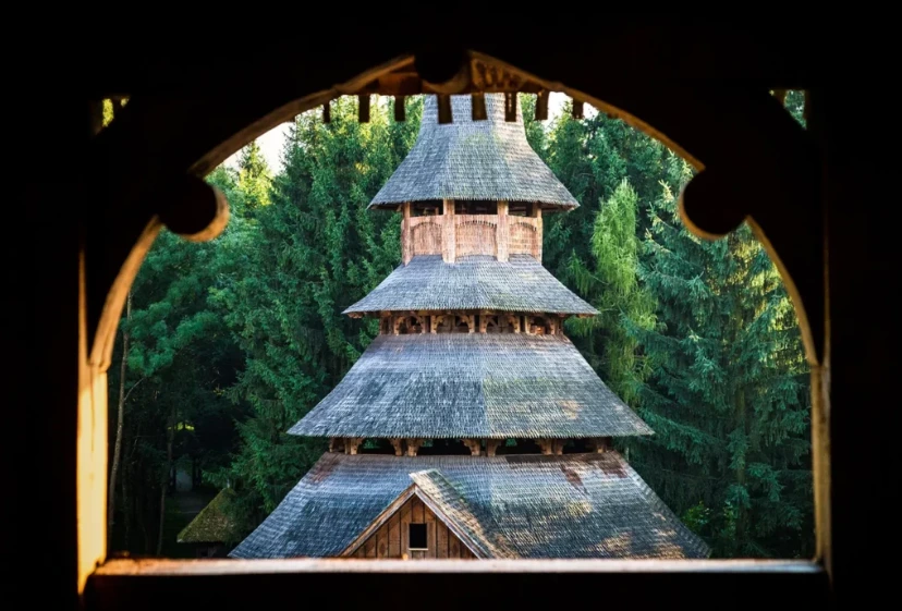 독특한 모양의 나무 탑이 있는 수도원들인데요.