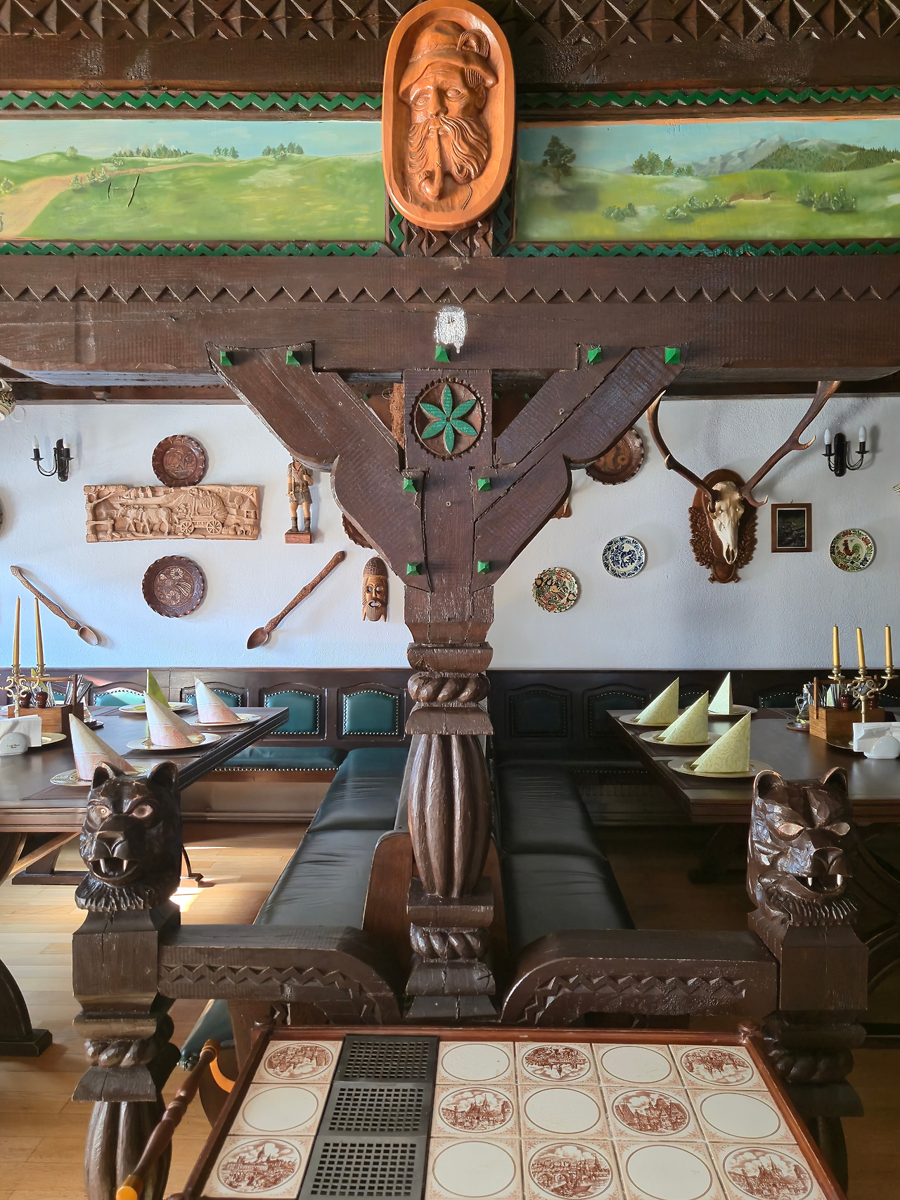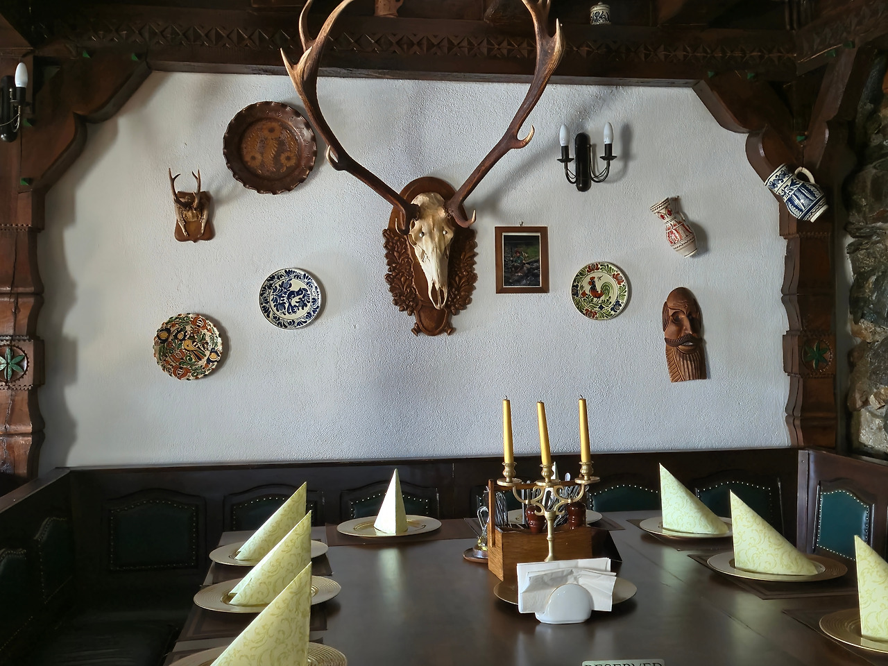 '헌터 프린스 캐슬 앤드 드라큘라 호텔' 레스토랑은 이름에서 이미 특징을 짐작할 수 있듯이 사냥 전리품들인 사슴뿔들이 곳곳에 걸려있고 골동품오브제들이 고성의 분위기를 물씬 풍기더군요.