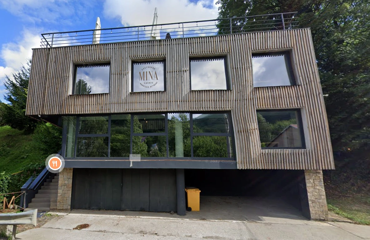 농촌의 허름한 집들이 늘어선 도로옆에 겨우 주차를 하고 보니 옆에는 녹슨 양철지붕의 버스 정류장이 있고 그 옆에 미나 카브닉(Mina Cavnic)이라는 이름의 현대식 2층 건물이 떡 하니 보였지요.