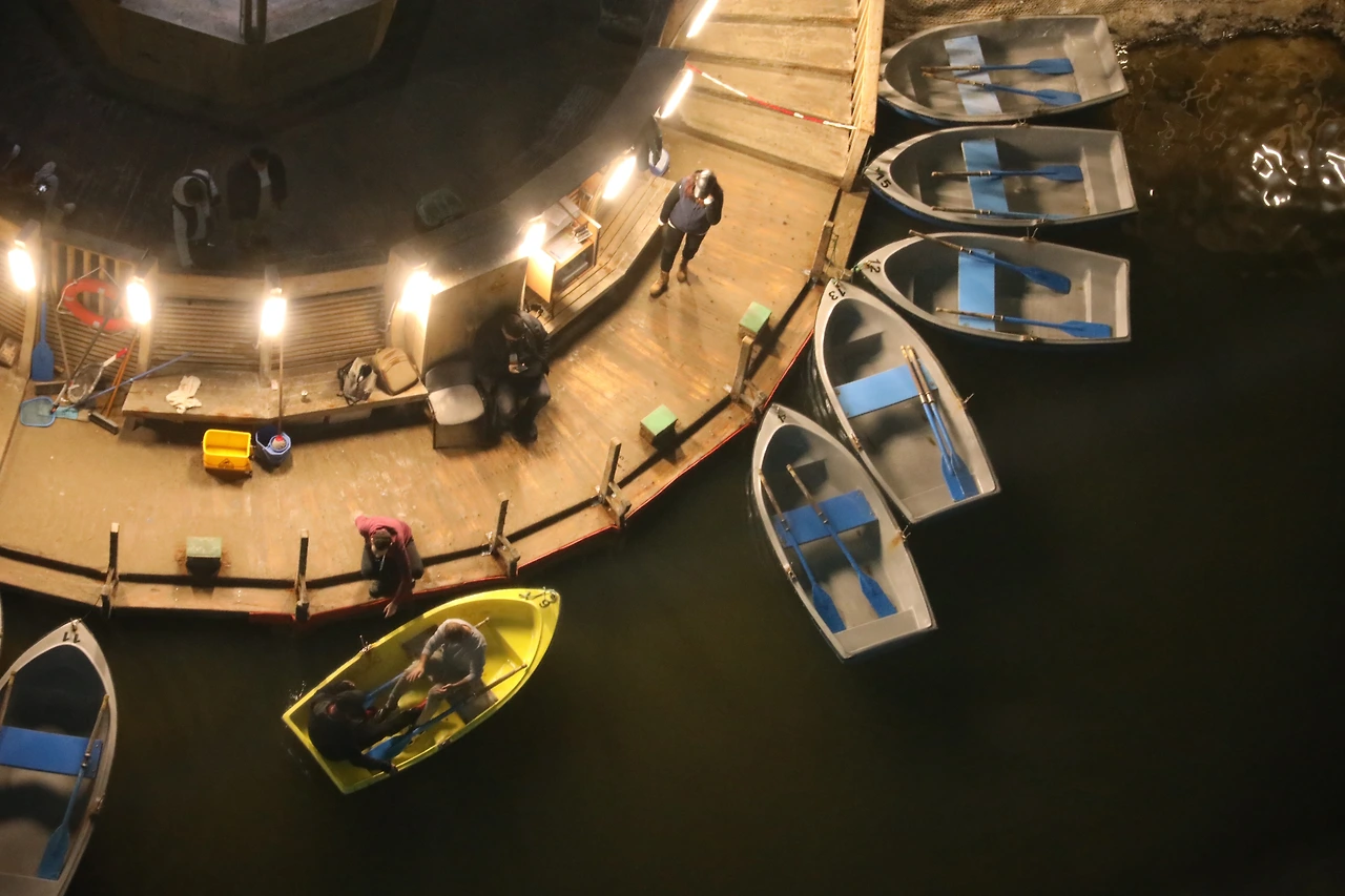 밀폐된 공간의 지하 호수는 바라보는 것만으로도 오싹한데 보트를 타는 사람들이 꽤 있습니다.