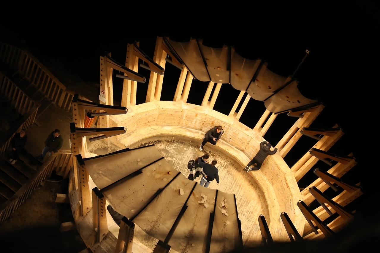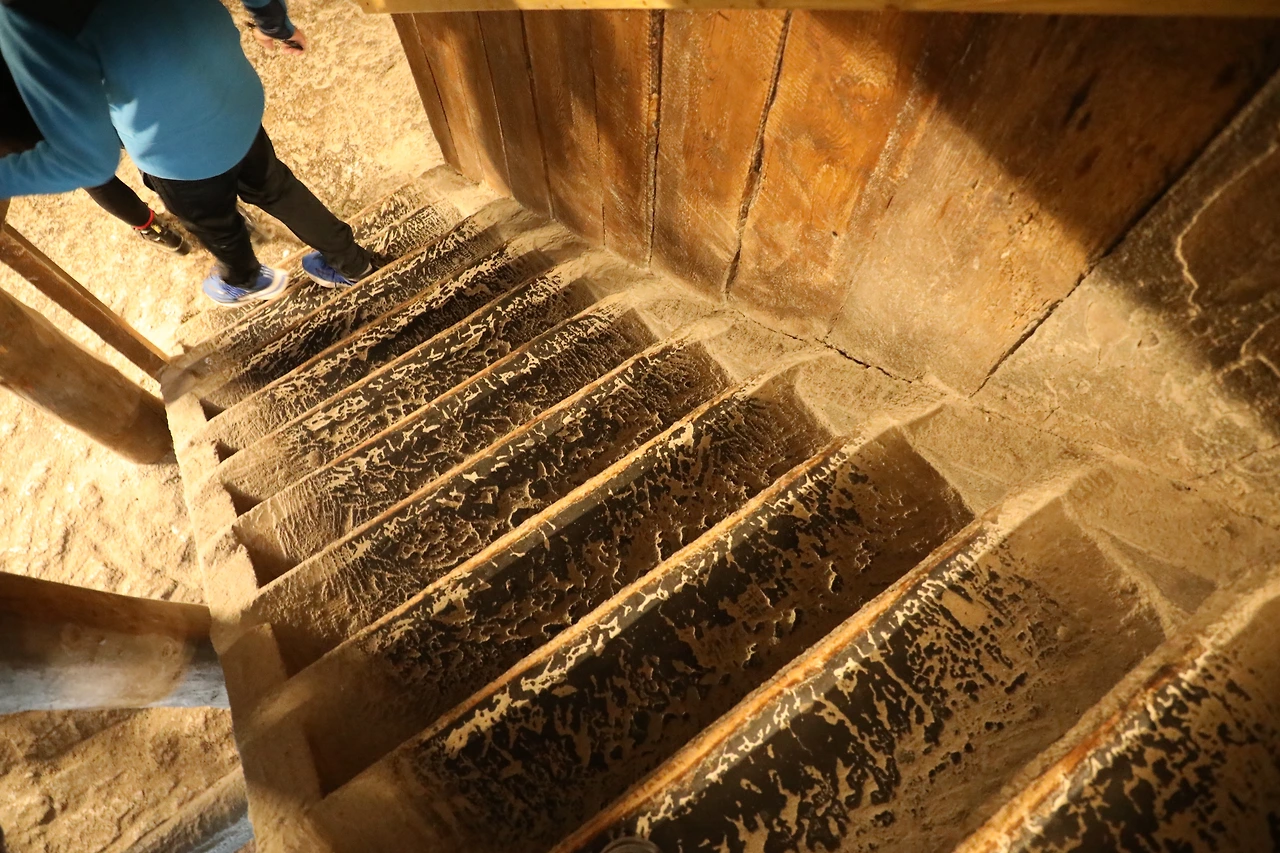 그러나 소금 결정체가 덕지덕지 붙어있는 13층의 좁은 나무 계단을 걸어서 내려가는 일은 결코 만만치 않을 겁니다.