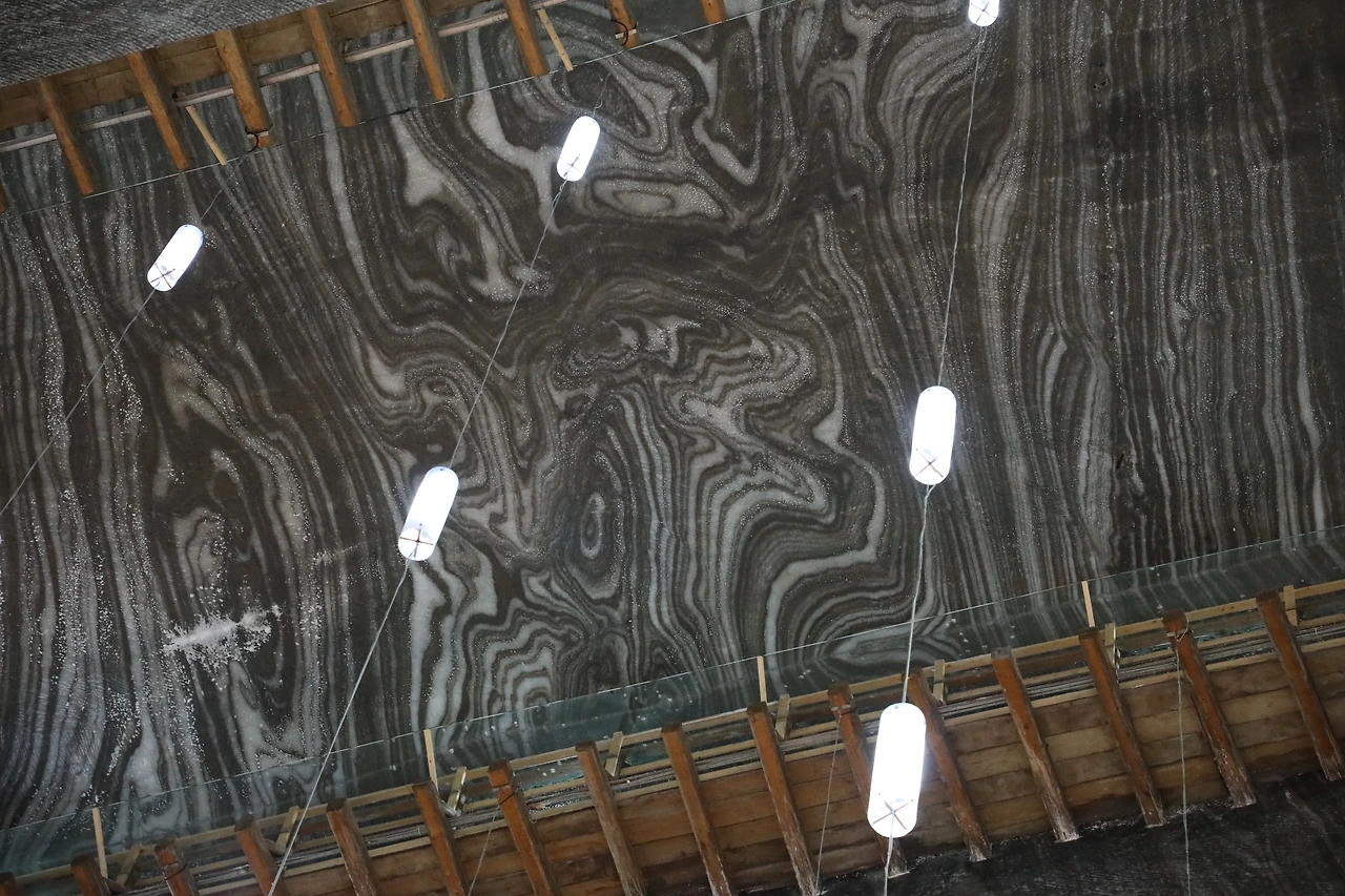 질 좋은 대리석의 마블링 같기도 하고 미술 시간에 물 위에 유성 물감을 떨어트린 후 종이를 물 위에 덮어 묻혀서 작품을 만들었던 것도 생각나는 무늬의 벽이 신기합니다.