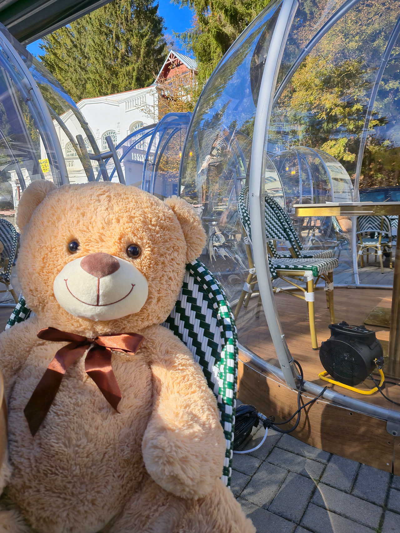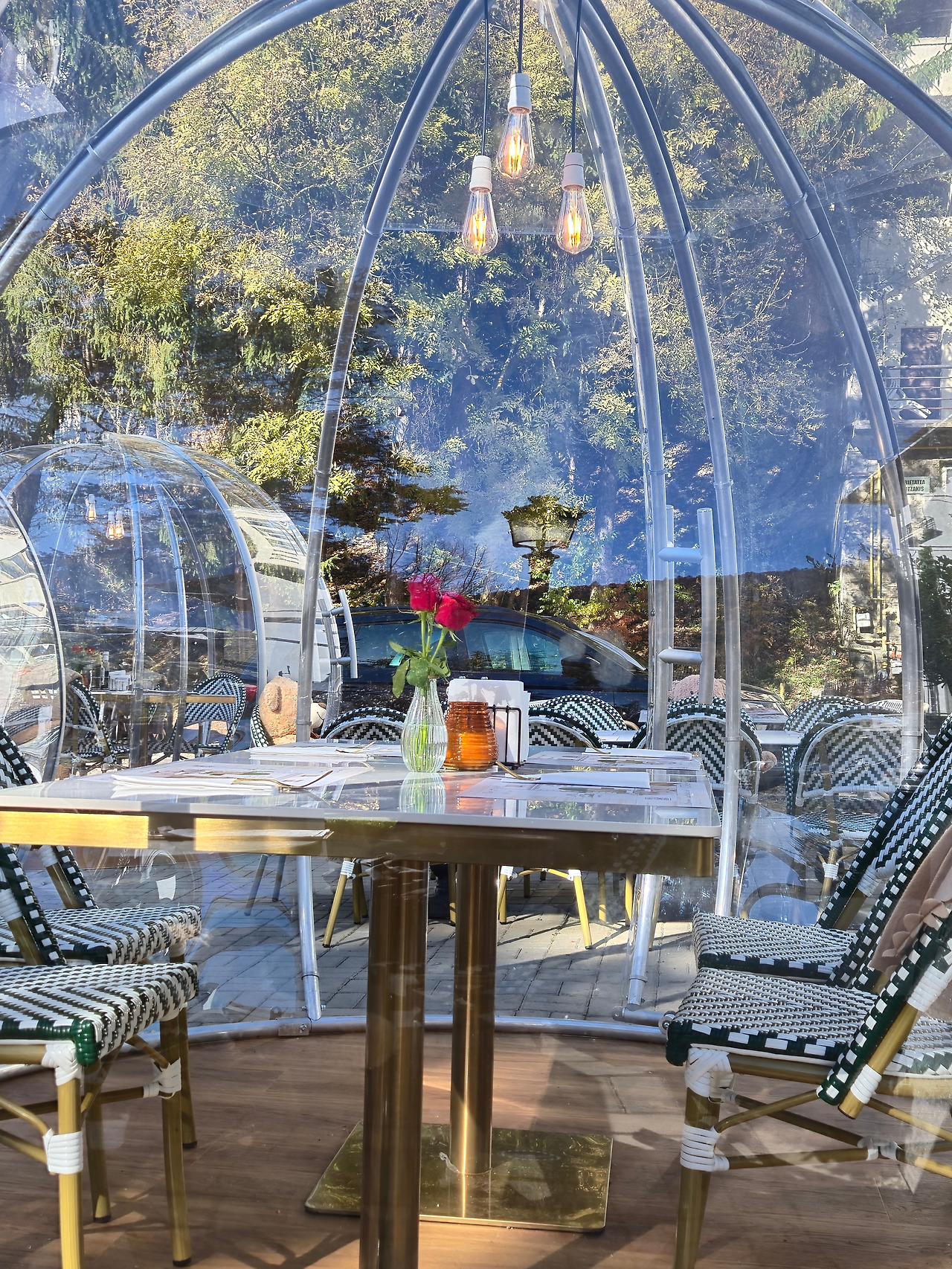 레스토랑 가든에 설치된 이글루 스타일의 투명 텐트로 들어가니 따뜻합니다.