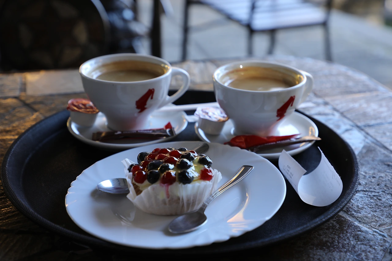 바나나 케이크와 카푸치노, 그리고 은은한 팝송이 저 혼자 흘러갈 뿐 멋진 인테리어가 있는 것도 아니고 작은 축구장이 보이는 작은 도시의 동네 모퉁이입니다.