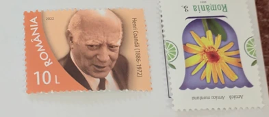 10 레이 우표에는 어떤 남자의 얼굴이, 3 레이 우표에는 아르니카 몬타나라는 노란 데이지 꽃그림이 프린트되어 있어요.