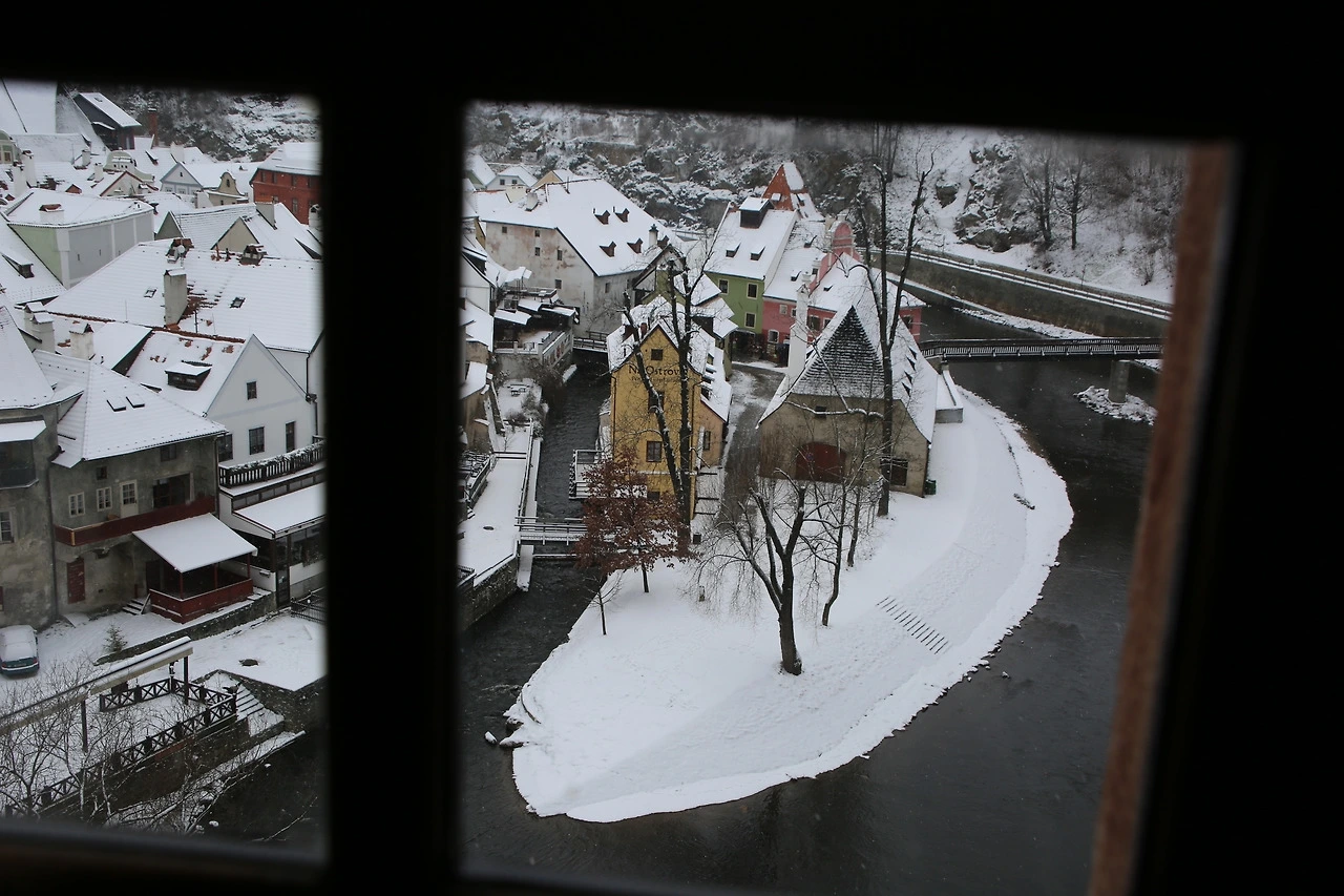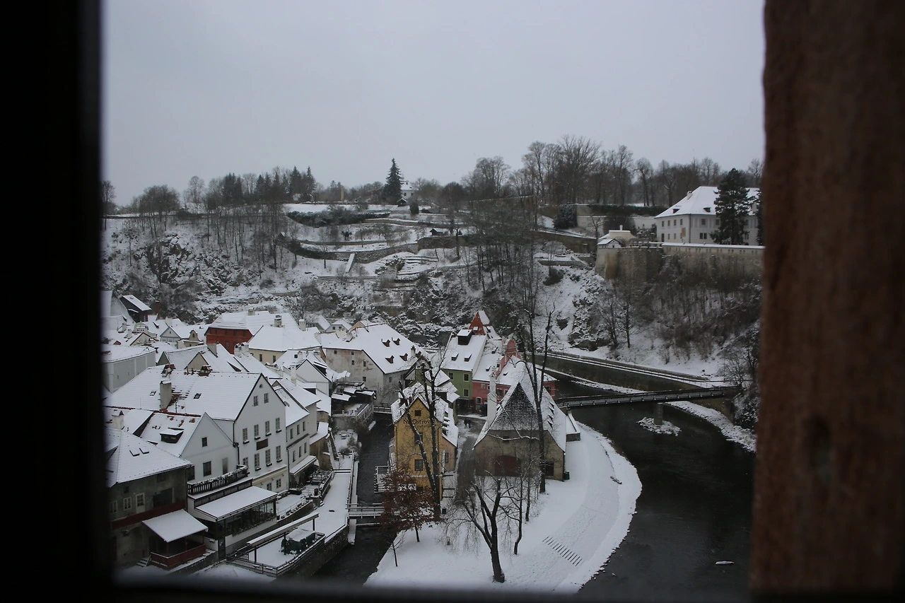 몇 년 전 겨울, 체코의 체스키 크룸로프의 성에서 창틀 너머로 바라보았던 눈 쌓인 풍경이었지요.