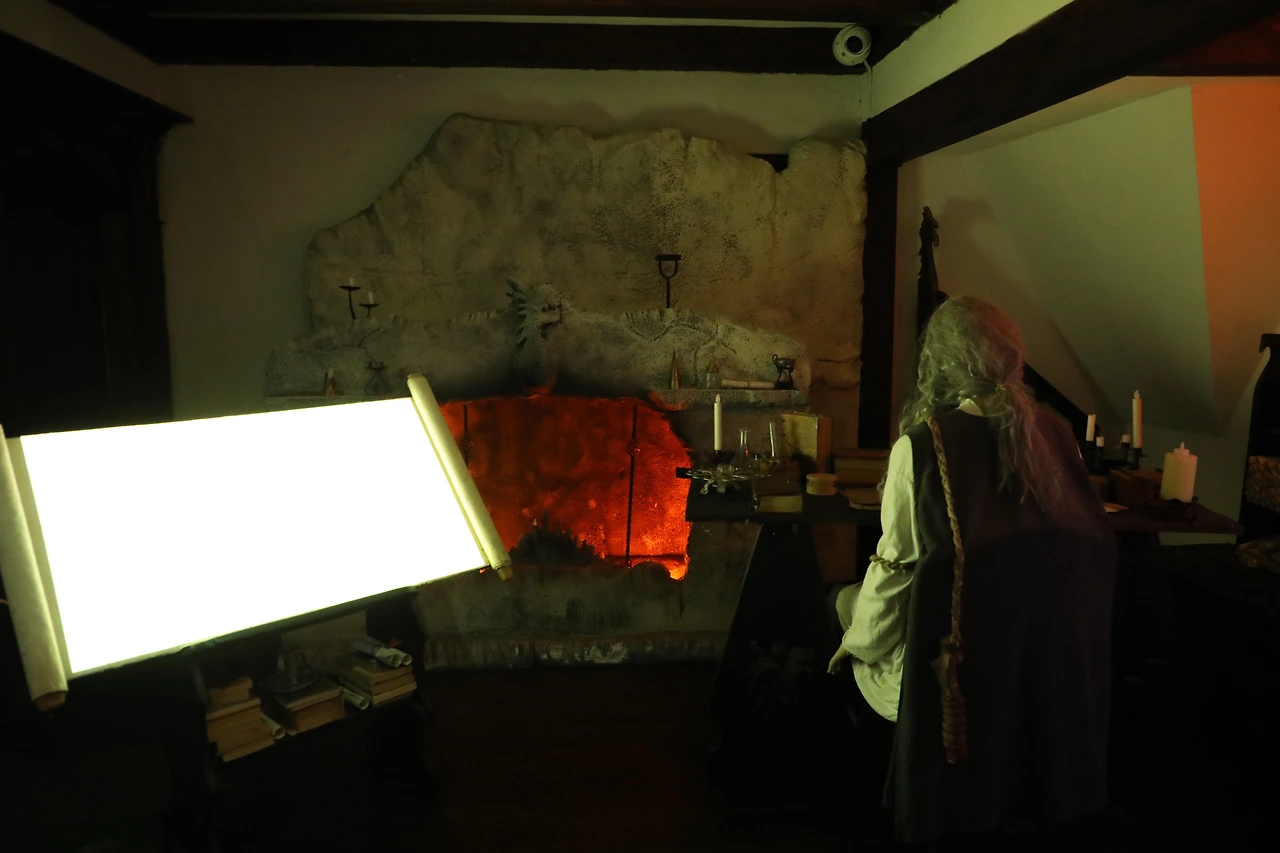 그 입구는 타일로 만들어진 벽난로 뒤에 숨겨져 있고 한 사람이 겨우 지나갈 정도로 매우 좁다고 해요.