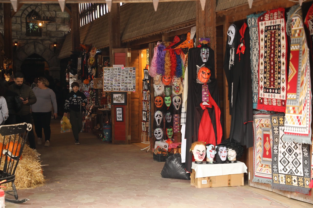 드라큘라 마을인 데다 이틀 후면 핼로윈 데이라 여기저기 해골 투성이입니다.