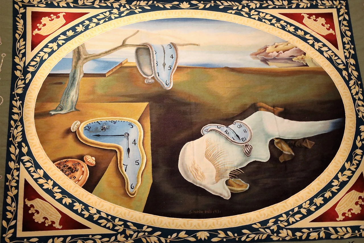 침대 머리맡에는 주머니 시계가 녹아내리는 그림을 바탕으로 만든 태피스트리가 걸려 있는데요.