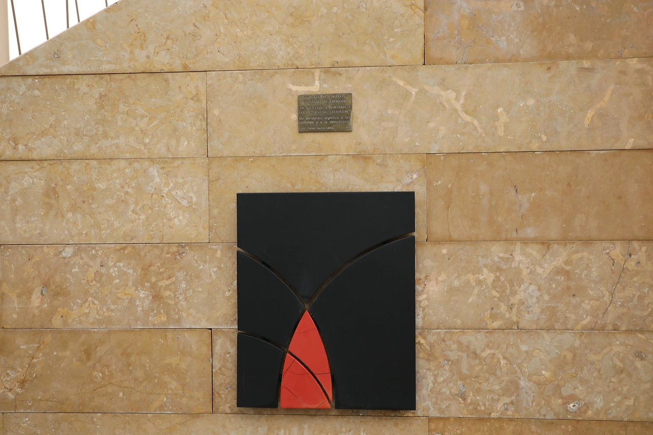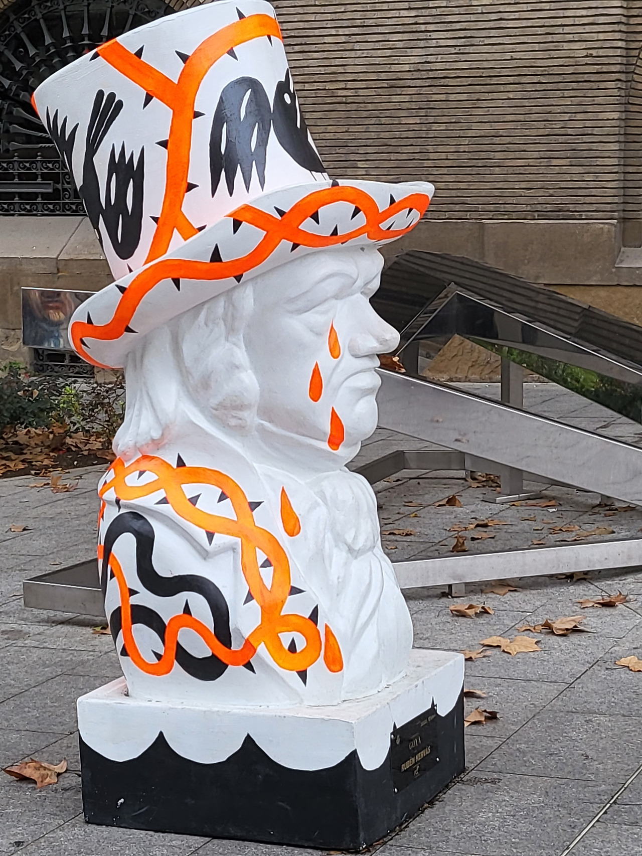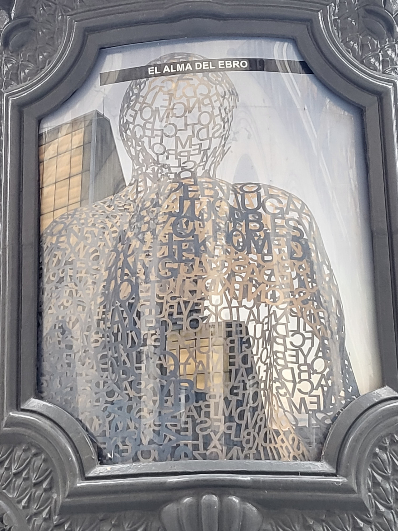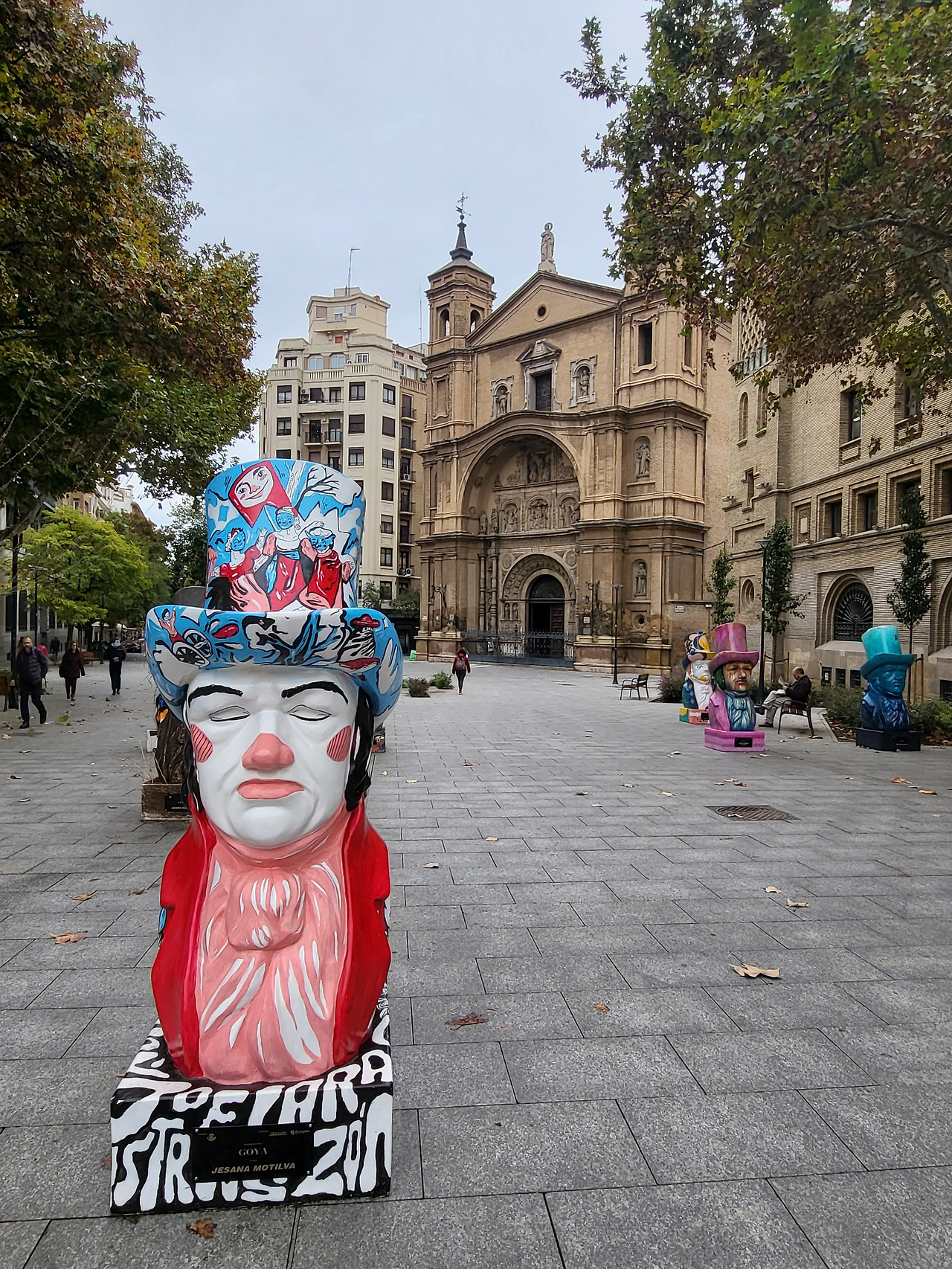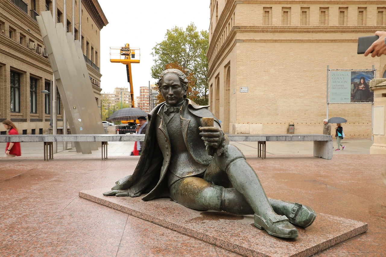 지지 부분에는 금속 보강재를 넣어 200kg이나 되는 이 조각은 고야 미술관에 소장된 고야의 자화상을 모티브로 만들어 아라곤 출신의 예술가 12명이 각각 페인팅 작업으로 만든 것입니다.