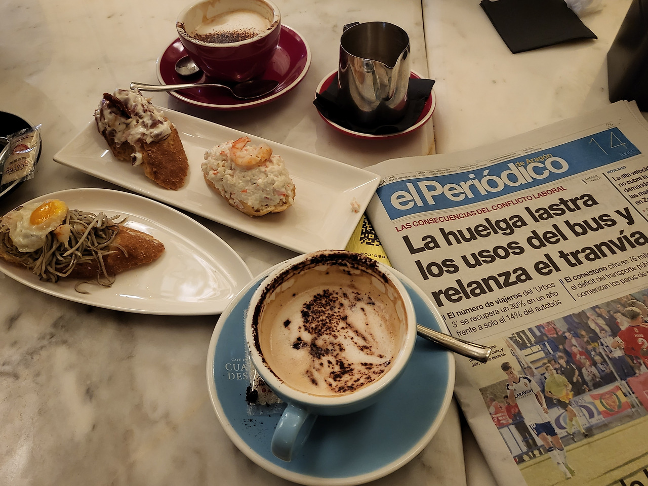 다양한 핀초스와 더티 플레이팅의 카푸치노는 꽤 만족스러웠습니다.