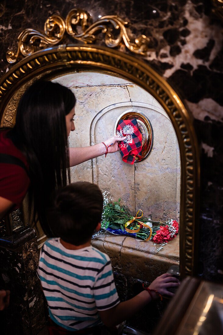 매 처음 세워진 기둥에 무릎을 꿇고 손을 대거나 입을 맞추는 신자들이 보입니다.