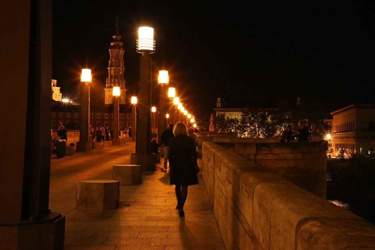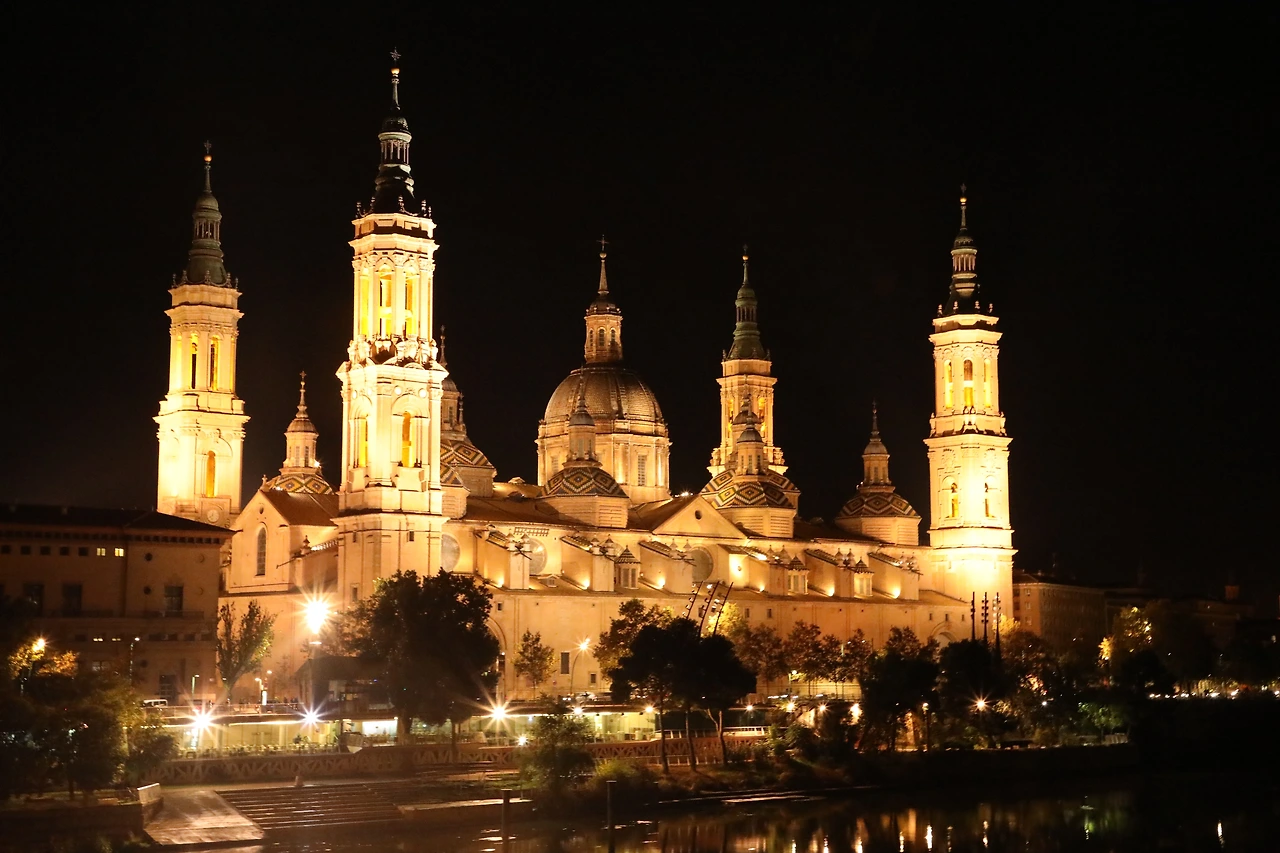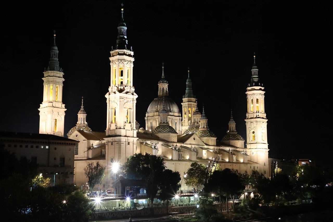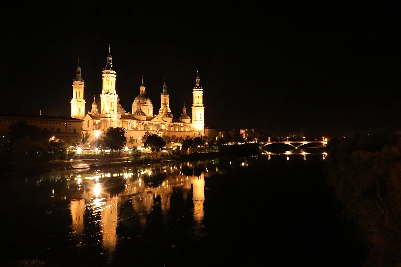 필라르 성당의 첨탑들은 어둠 속에서 부드럽게 빛났고, 불빛은 강물 위에 길게 흘러내렸지요.