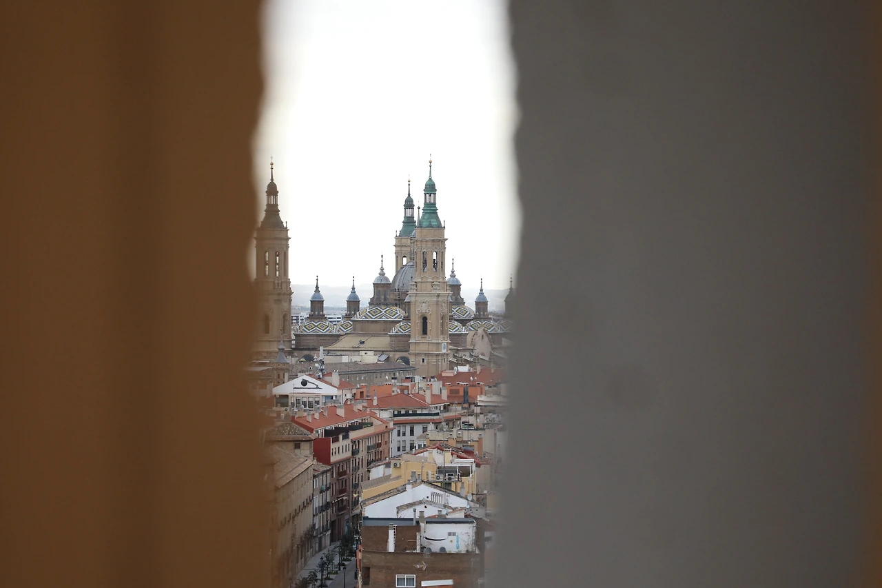 창문을 열자 필라르 성모 대성당의 돔과 첨탑이 병풍처럼 펼쳐져 있습니다.