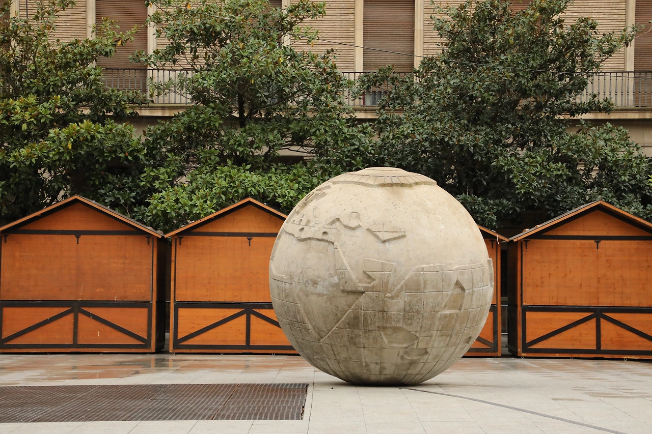 광장에 거대한 원형의 돌조각 월드 볼(world ball)이 있습니다.