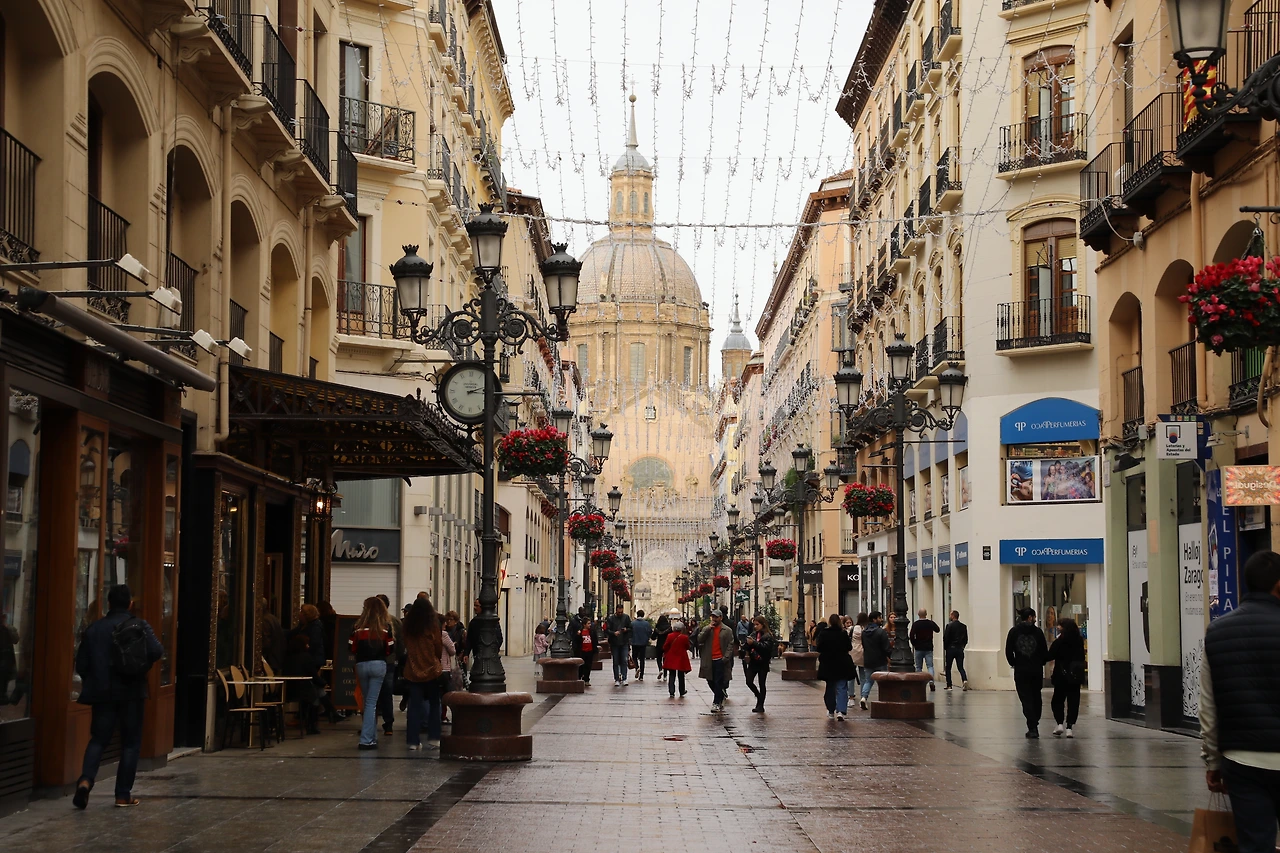 필라르 대성당 앞의 알폰소 1세 거리는 상점과 식당, 카페가 가득한 보행자 거리입니다.