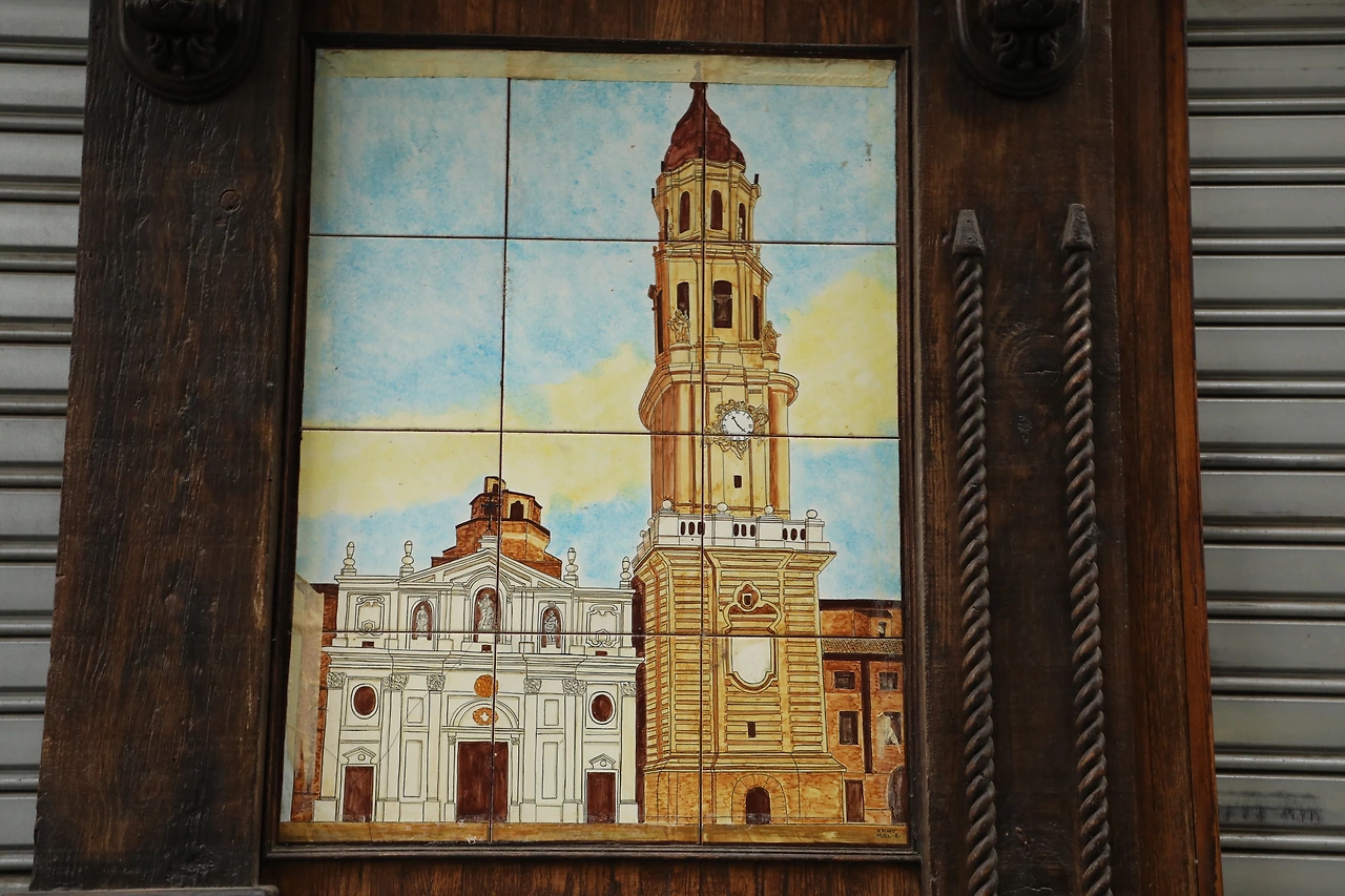 여행자의 모습을 담은 벽화와 사라고사의 자랑인 성당 그림이 걸려있는 길을 천천히 걷습니다.