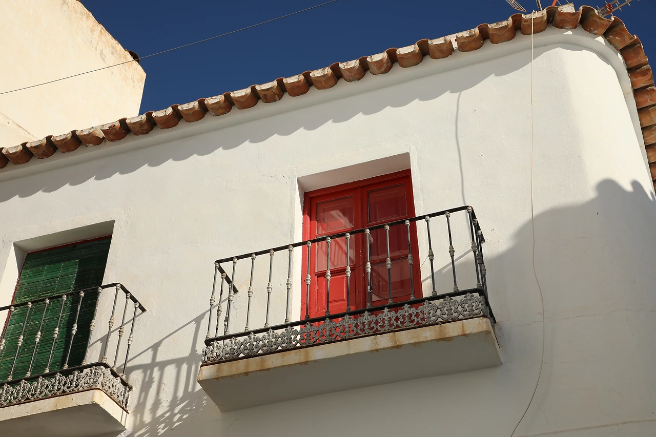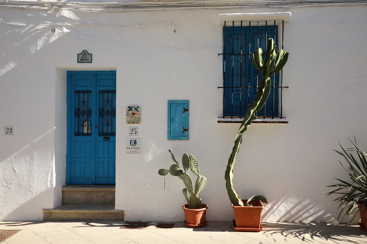 쉽게 말해 하얀 벽과 파란 화분, 붉은 꽃은 안달루시아의 전형적인 색의 삼중주입니다.