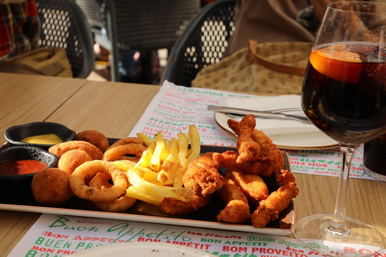 소박한 샐러드와 해산물 튀김인 깔라마리에 곁들인 상그리아 한 잔이 기분을 더더욱 업시켰지요.