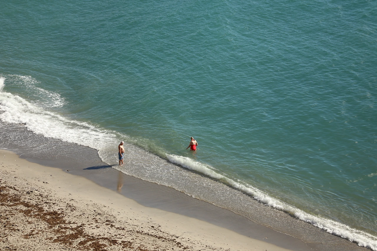 해변엔 타월을 길게 깔고 일광욕을 즐기는 이들, 배를 깔고 책을 읽는 사람들, 지중해로 들어가 노익장을 과시하는 노부부, 그리고 화보 촬영 중인 모델과 사진작가도 눈에 띕니다.