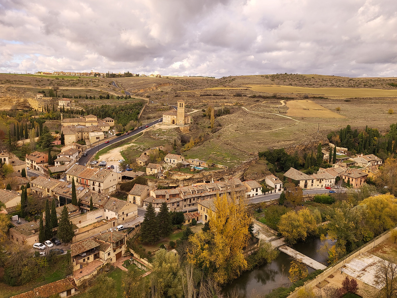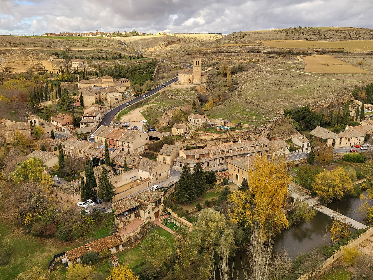 위에서 내려다보는 세고비아는 다정한 붉은 지붕과 무심한 돌담으로 가득합니다.
