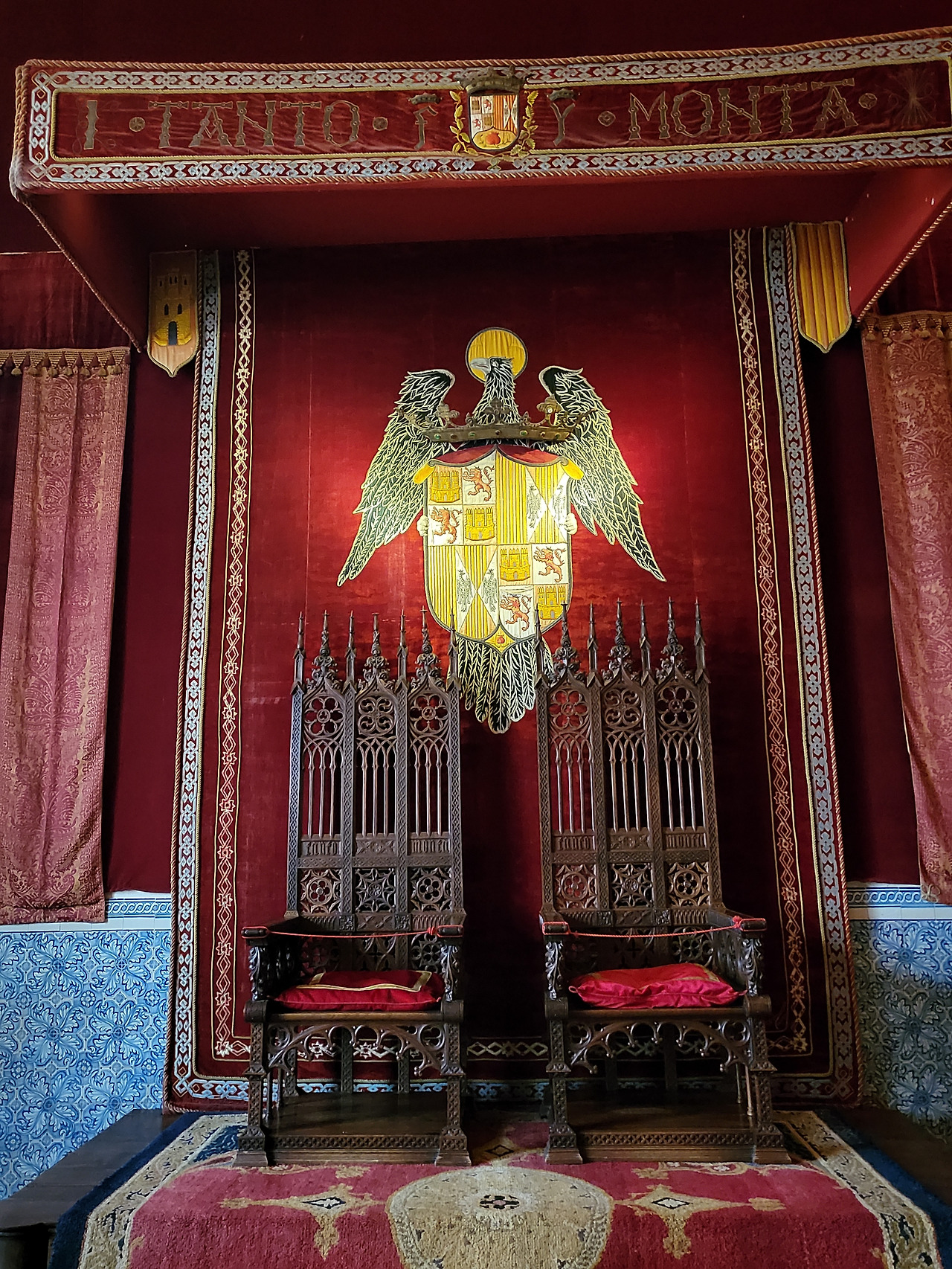 벽에는 이사벨 여왕과 페르난도 왕의 문장이 새겨져 있었고, 그 위에는 "Tanto monta, monta tanto…(동등하다, 똑같은 권위라는 뜻)"라는 문장이 황금처럼 반짝였습니다.