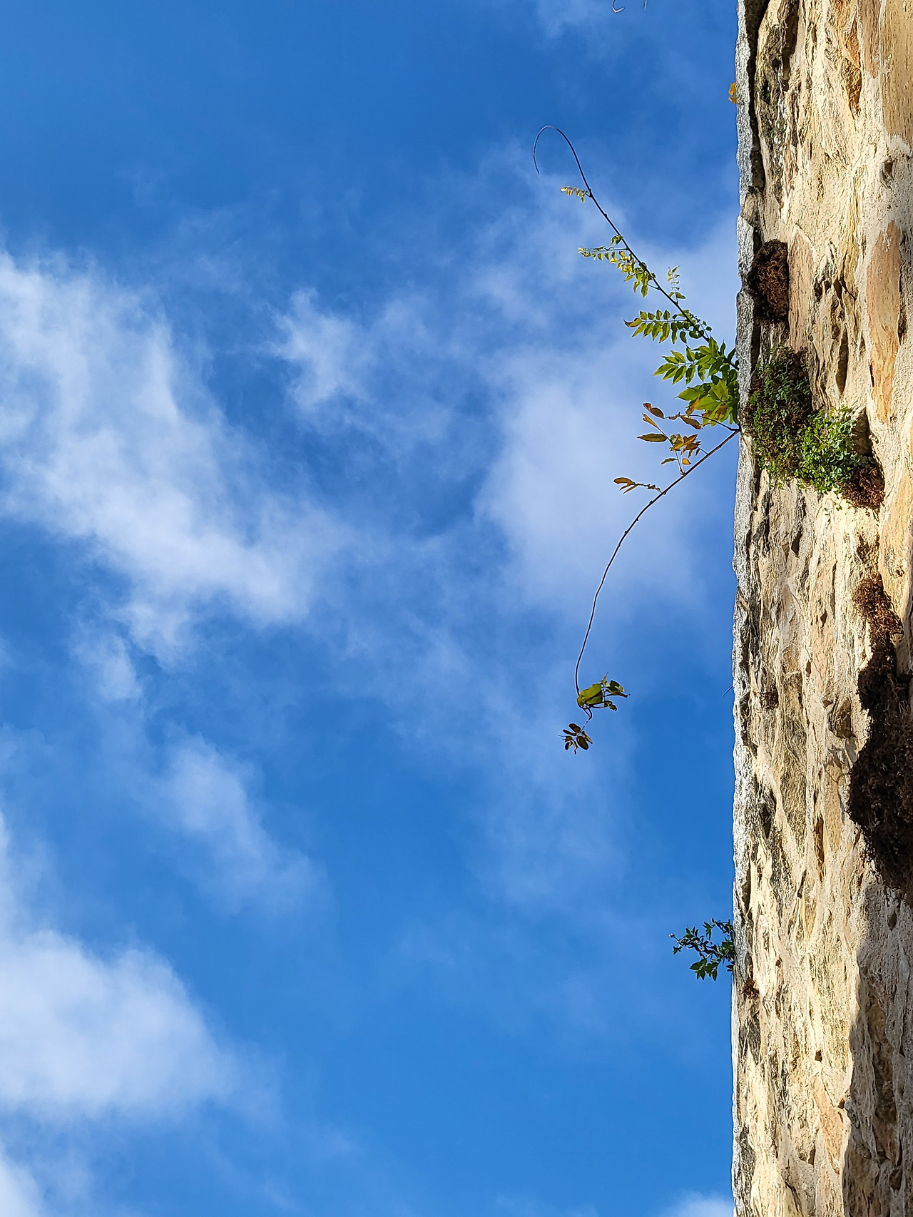 돌담의 작은 틈에서 힘겹게 뿌리를 내린 풀 한 포기가 씩씩하게 몸을 뻗어내고 있는 모습이 대견합니다.