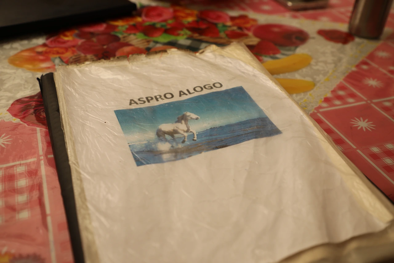 메뉴판은 마치 주인의 주머니 속에서 오랫동안 구겨져 있던 것처럼 꼬깃꼬깃하고 얼룩이 묻어있고 표지에는 상호를 설명하듯 백마 한 마리가 해변을 달리는 사진이 담겨있습니다.