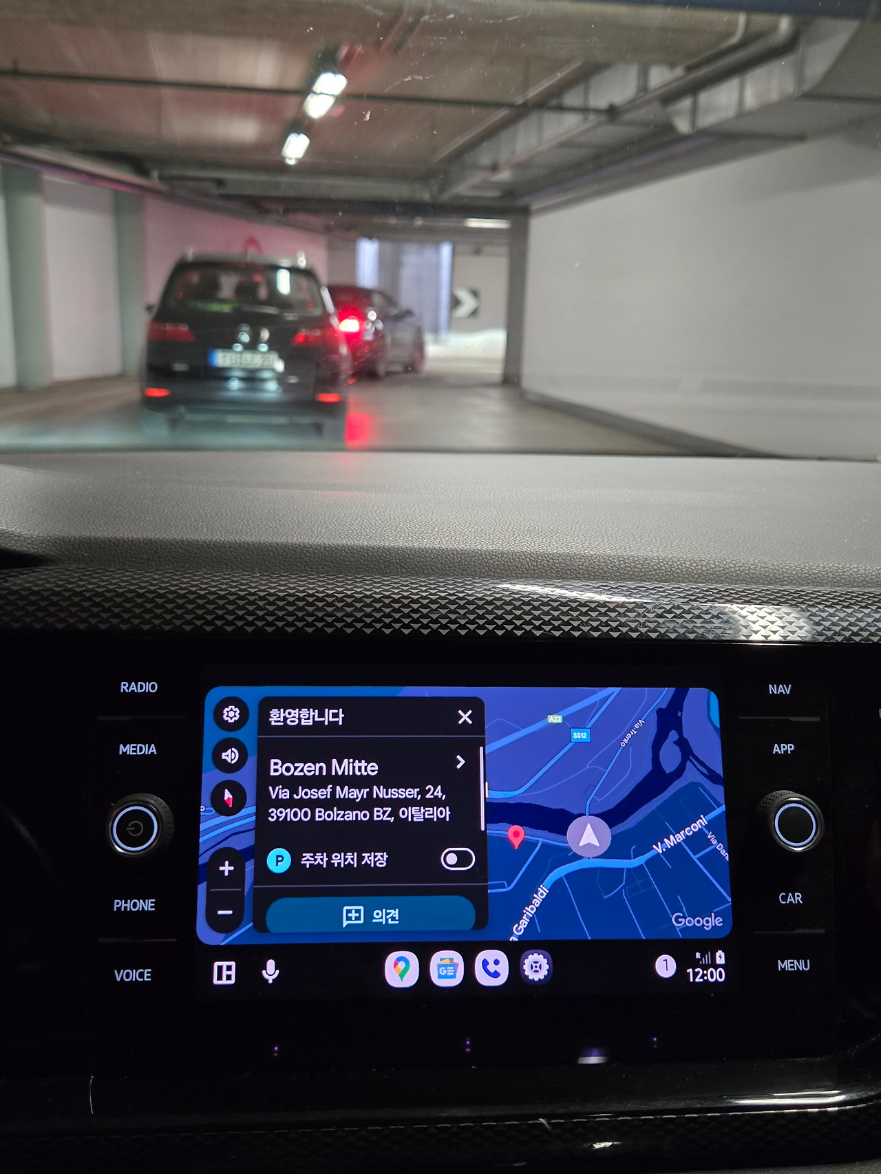 가르다 호수 옆 마을에서 하루를 지낸 아침, 안드로이드 오토 연결시도를 했습니다.
