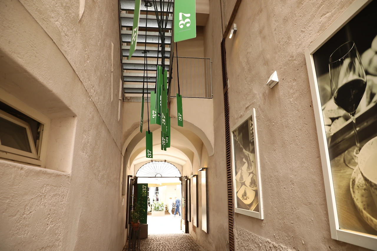 광장 사이의 좁은 길을 따라 들어가니 아케이드에 상점들이 줄지어 있는 '비아 데이 모르티치(Via dei Portici)'가 나옵니다.