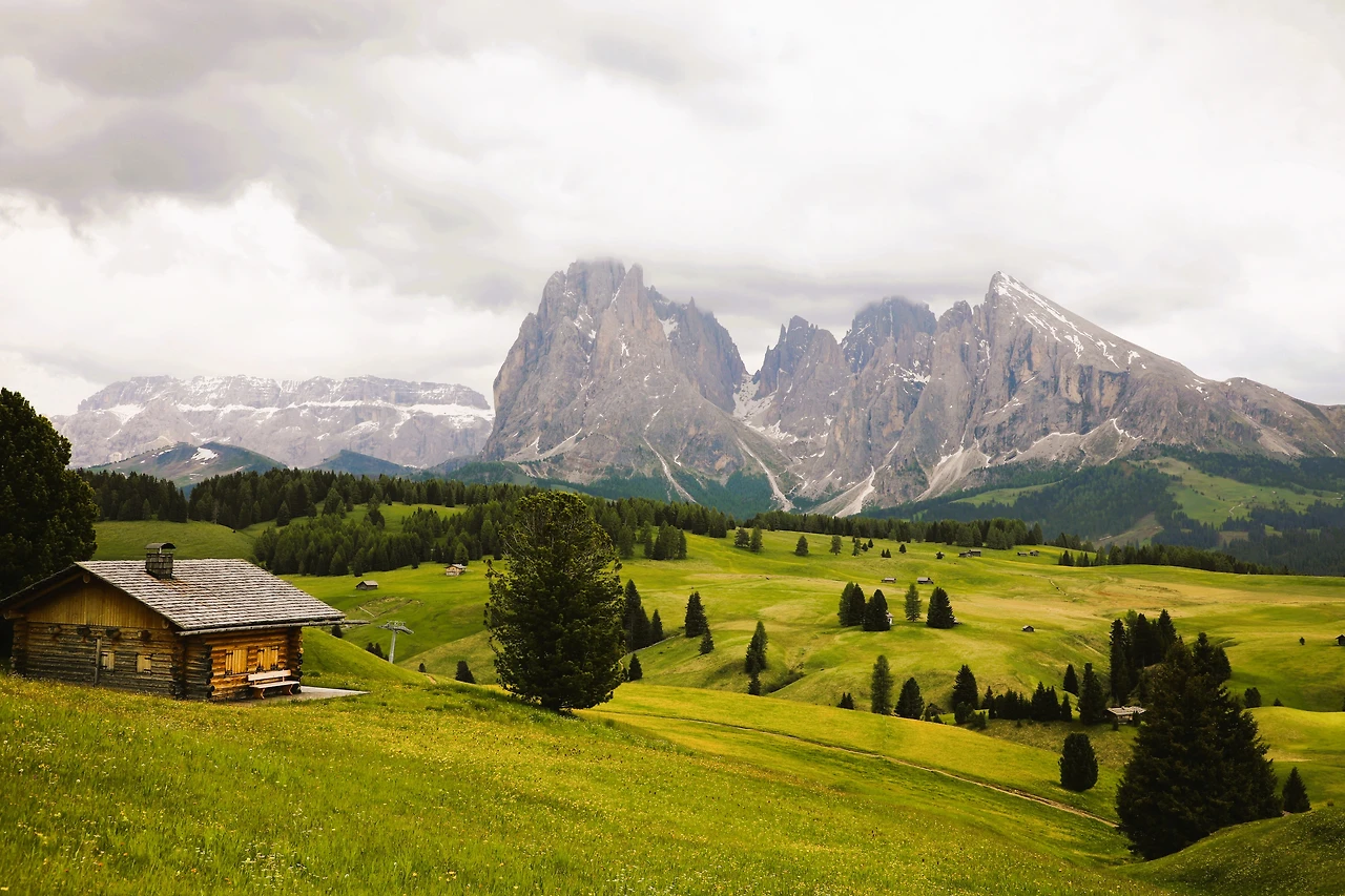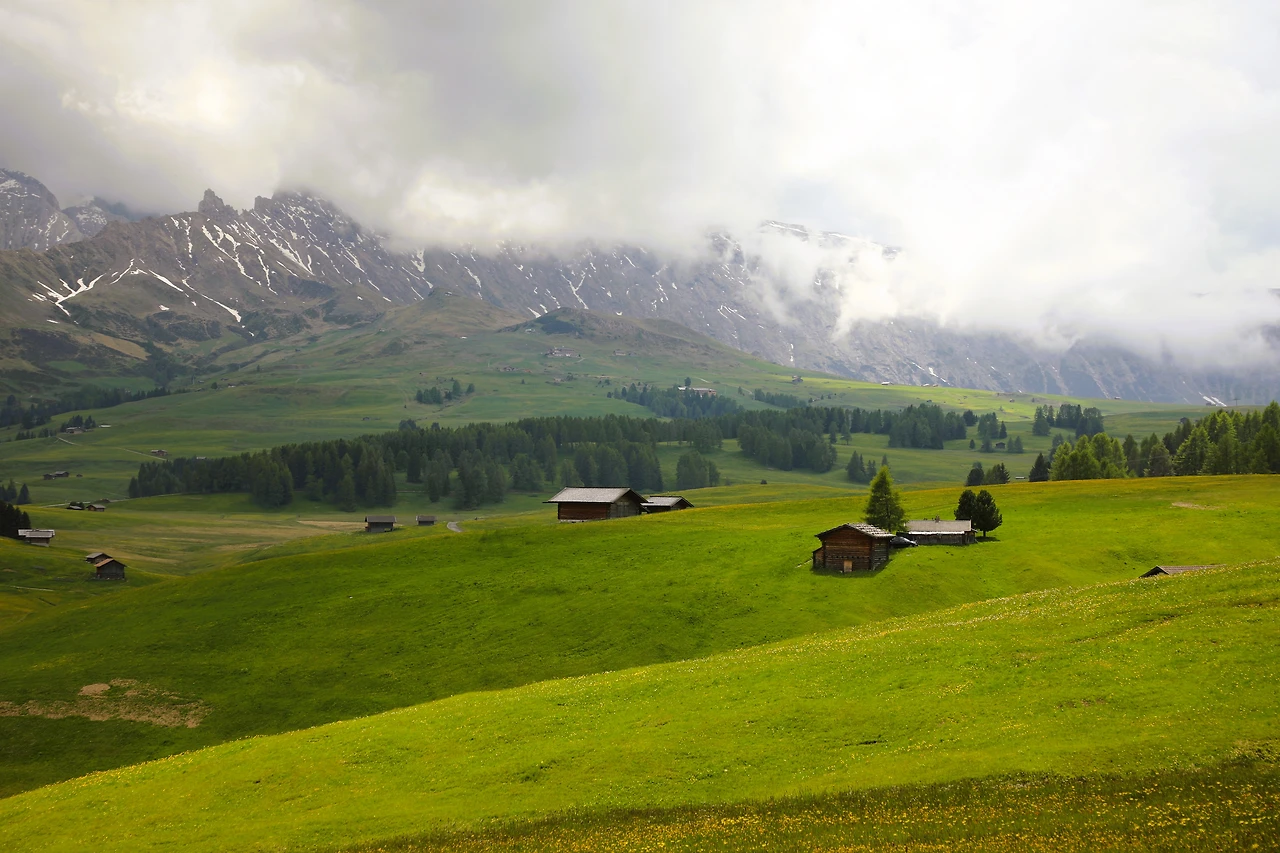 알페 디 시우시의 아침은 구름보다 먼저 깨어나는 소들의 발소리로 시작됩니다.