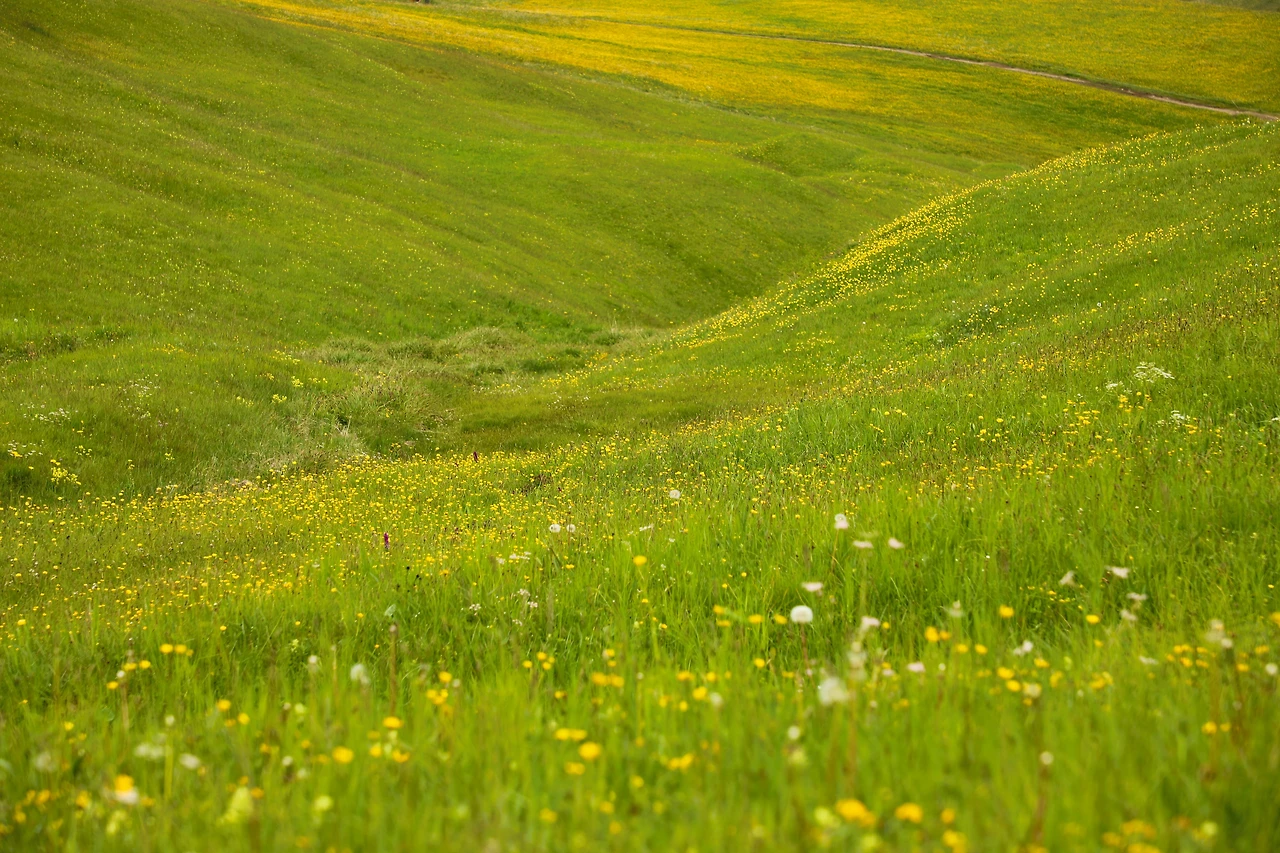 그리하여 돌로미티의 여름 들판은 소박한 색으로 가득합니다.