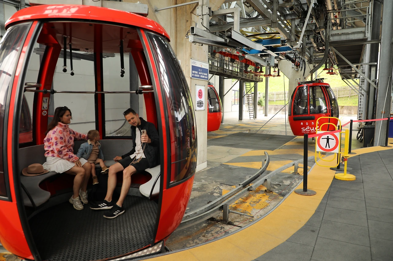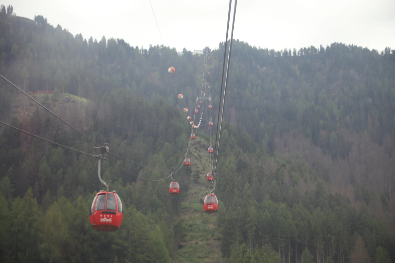빨간 공 모양의 곤돌라를 타고 올라갑니다.