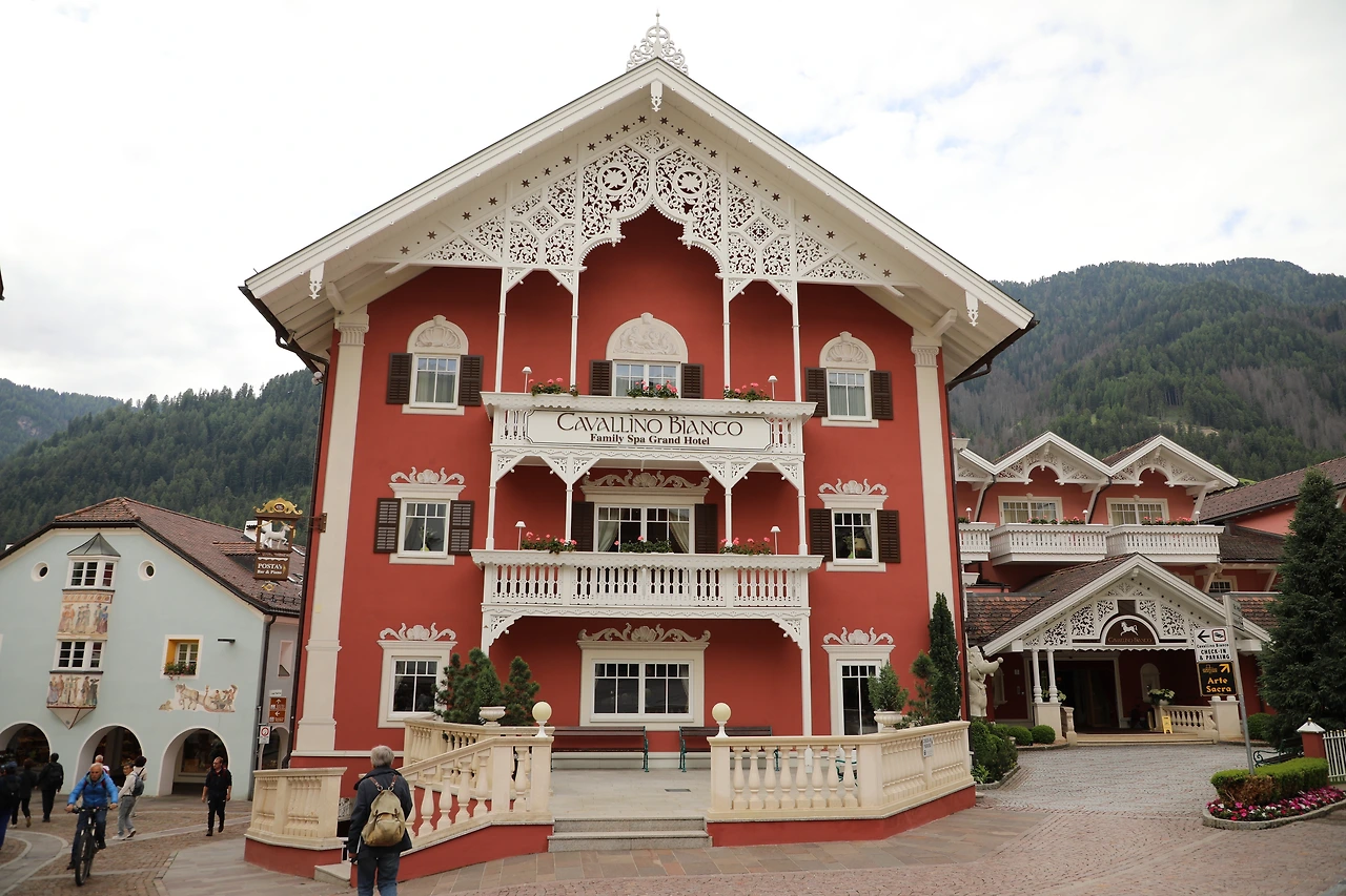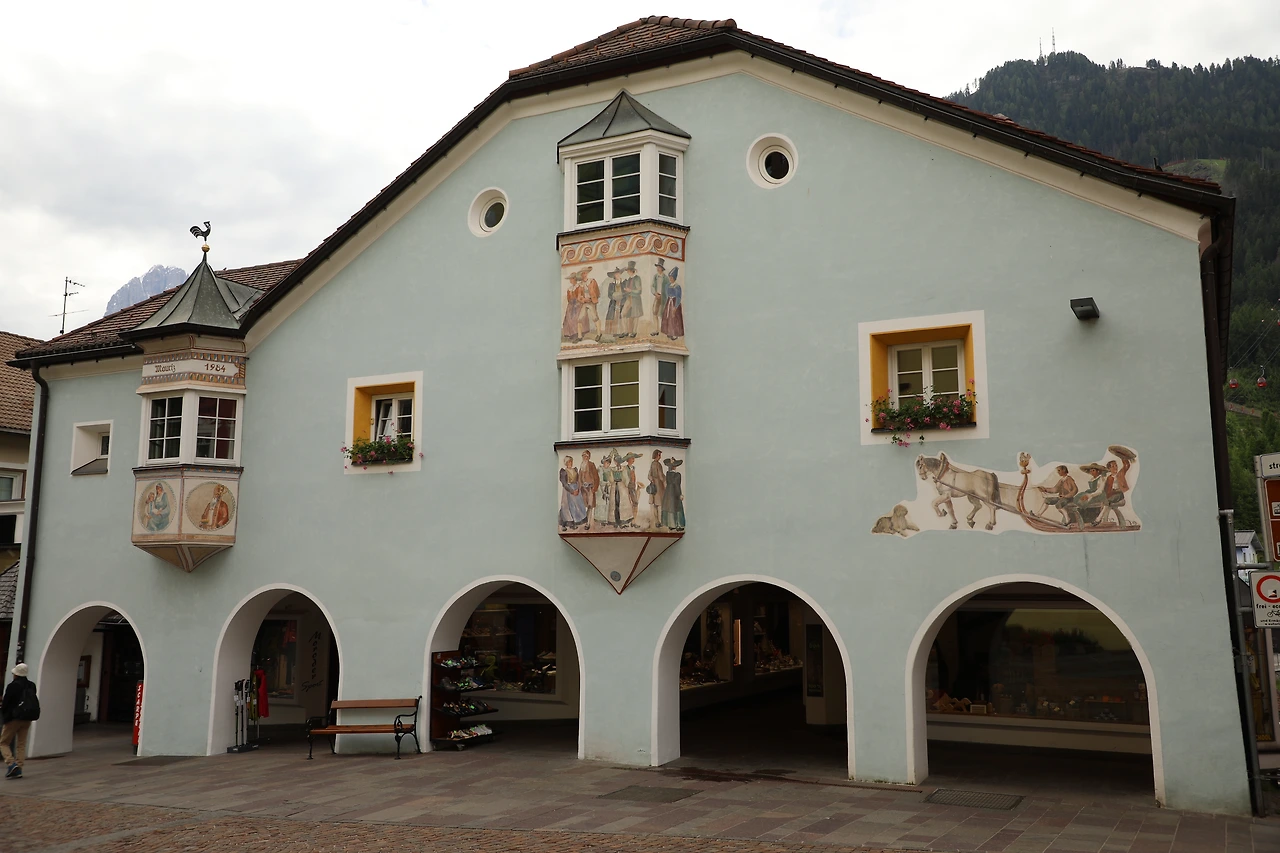건물들은 대부분 남티롤 양식으로 파사드의 그림, 발코니의 꽃장식, 박공지붕들이 많아 이탈리아가 아닌 오스트리아 느낌이 물씬 풍기지요.