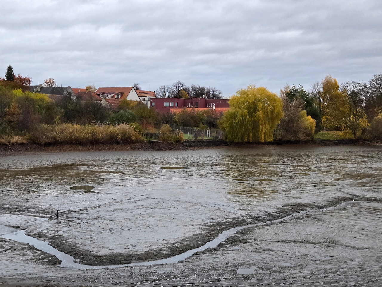 흐린 하늘, 비둘기 깃털빛 구름이 광장을 덮고 있습니다.