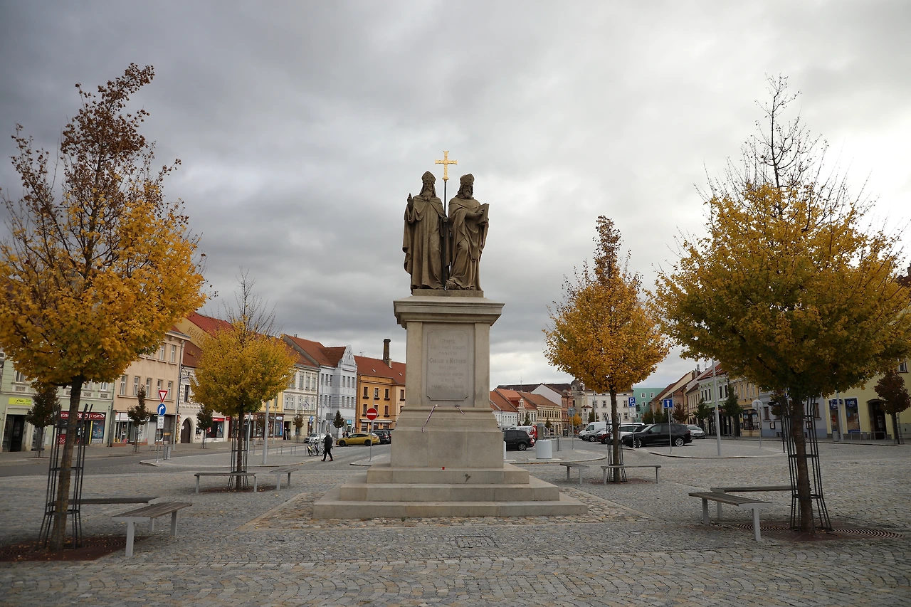 트르제비치의 카를로보광장, 두 성인의 조각상이 고요히 내려다봅니다.