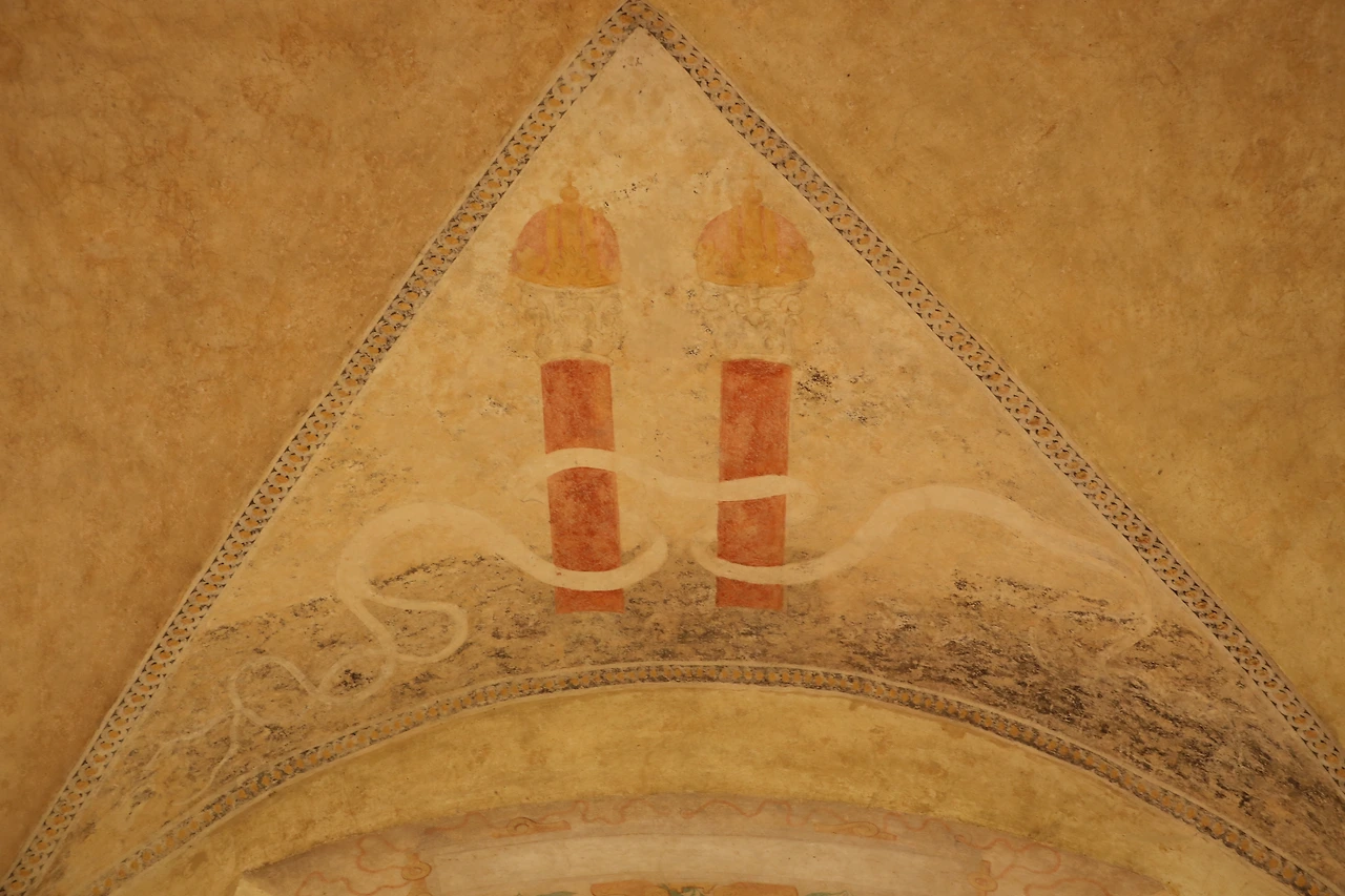 아치의 안쪽 모서리에 남아 있던 레몬색과 하늘색의 얇은 선들은 시간이 흐르며 색을 거의 잃었음에도