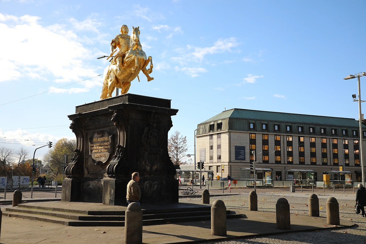 그 빛을 따라가자 어느 순간, 아우구스투스 2세의 황금 기마상이 불쑥 시야에 들어왔지요.