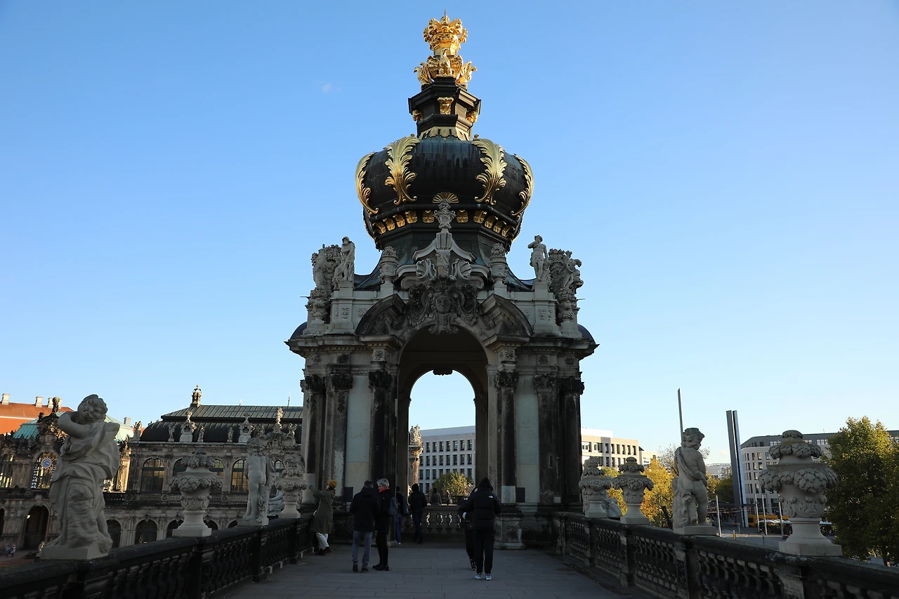 가장 인상적인 것은 왕관의 문과 아치 문을 통해 보이는 작센 왕의 기마상이었습니다.