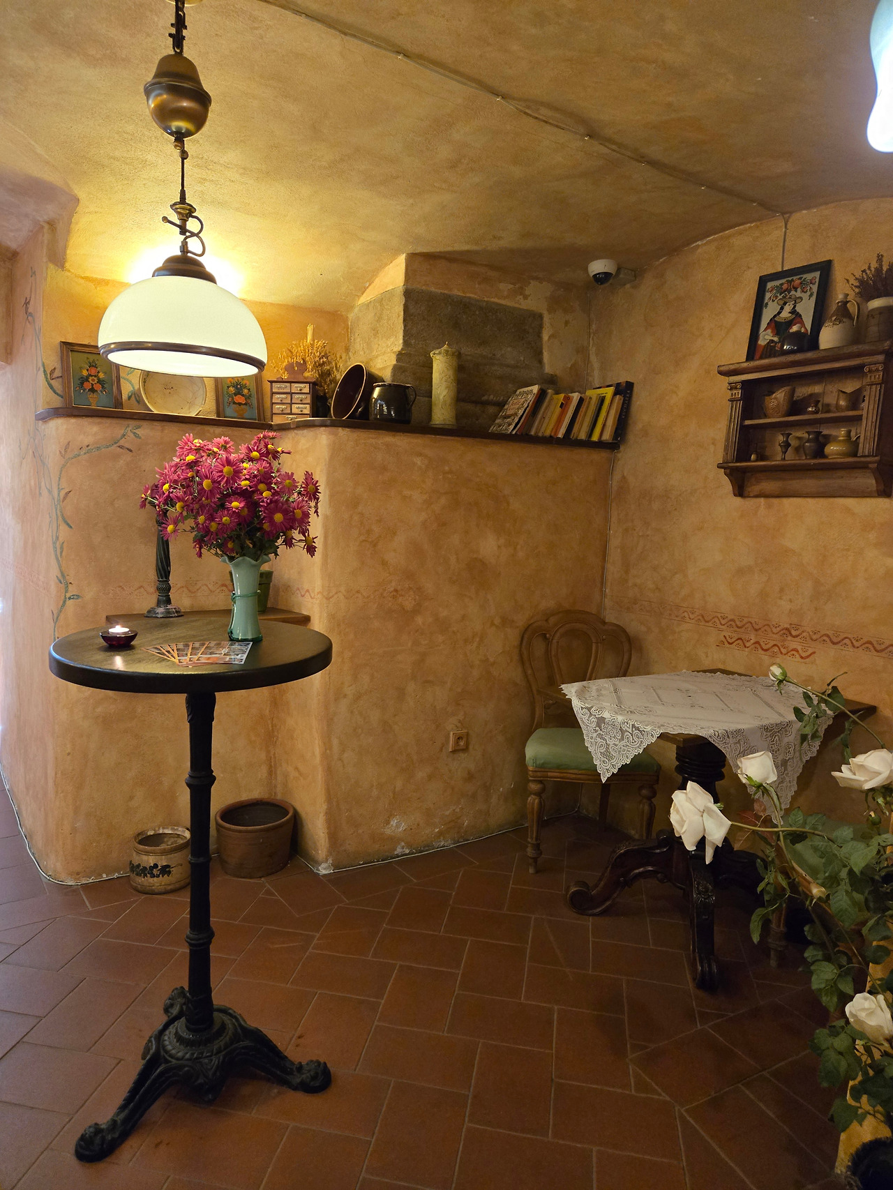 먼지 낀 캔버스 같은 벽 위로 스그라피토의 음영, 시간이 벗겨낸 프레스코의 흐릿한 붓질, 창문이 있는 듯 없는 듯 착시를 주는 트롱프뢰유까지, 불완전함과 풍화의 결이 따뜻한 숨을 품고 있습니다.