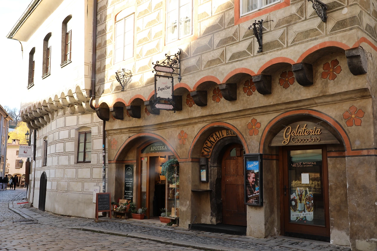 도시 곳곳에서 마주친 로젠베르크 가문의 장미 문장은 벽돌과 간판, 창틀과 문지방 위에 희미하게 남아 도시의 숨결처럼 이어졌습니다.