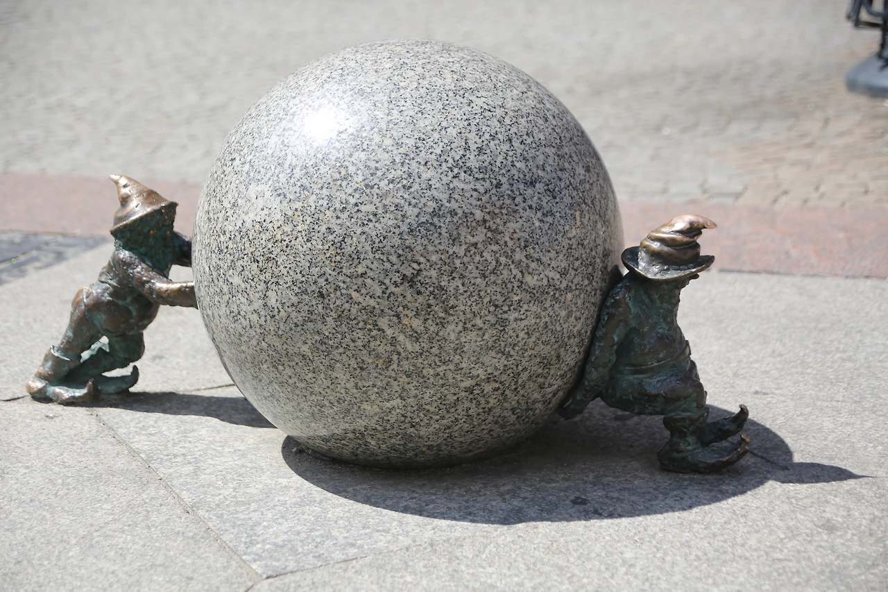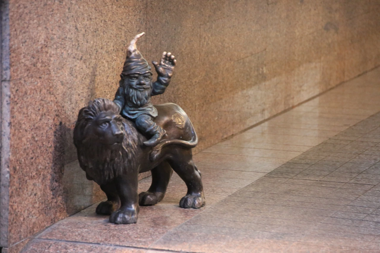 브로츠와프는 난쟁이 조각들이 숨바꼭질하는 곳이다. 마치 스머프 마을 같다. 30cm도 채 안 되는 크기의 난쟁이 160여 개가 도시의 곳곳에 숨어있다. 거리를 돌아다니다가 우연히 발견한 난쟁이 동상의 익살스러운 모습에 기분이 절로 좋아진다. 난쟁이 동상들은 땅바닥에 서 있기도 하고, 건물 벽에 붙어 있거나, 창턱, 가로등에 매달려 있는 등 여기저기 상상을 초월하면서 뜬금없이 나타난다. 일부러 찾는 재미보다 갑자기 발견되는 난쟁이가 더욱 익살스러워 보였다. 난쟁이는 현재도 계속 늘어나고 있는데 정확히 어디에 있는지, 모두 몇 개인지 정확히 알려진 바가 없다고 한다. 이 난쟁이 동상은 1982년 공산주의 정권에 반대하는 오렌지 운동에서 유래한다고 한다. 어느 날 반공산주의 구호가 적힌 장난스러운 모자를 쓴 난쟁이가 미소를 띠며 시위대 앞에 서 있는 걸 TV에서 본 토마사 모체크(Tomasz Moczek)라는 조각가가 5개의 난쟁이를 만들어 설치하면서 시작되었다고 한다. 폴란드에는 난쟁이 요정들이 사람 가까이 살면서 농사를 돕거나 나쁜 사람을 물리쳐주는 등 고마운 존재로 등장하는 전설이 있다고 한다.