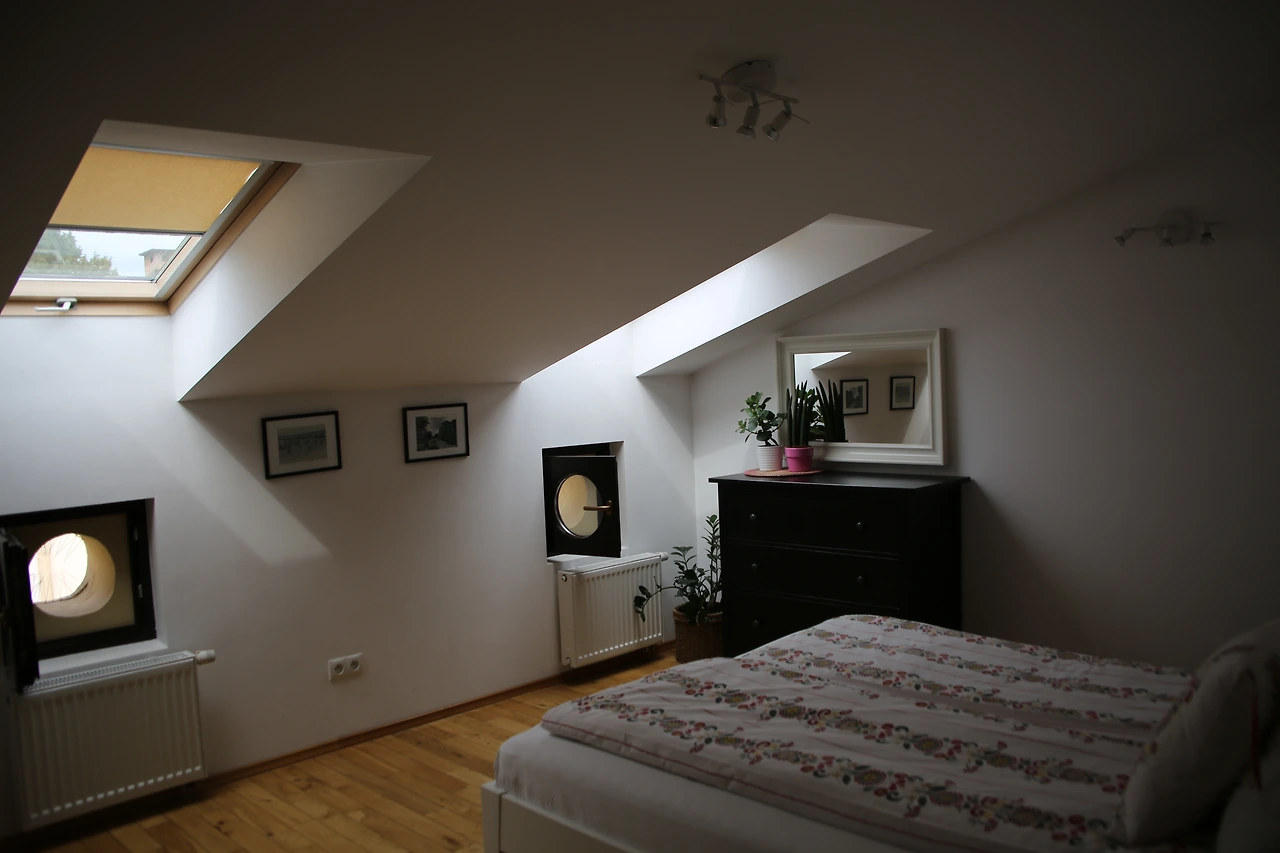 두 개의 침실 중 하나, 태어나서 처음 보는 창문이다. 비스듬한 천장에는 대칭을 이룬 천창이 있고, 벽엔 잠수함에서 볼 법한 동그란 창문이 쌍으로 있다. 그런데 벽체가 20cm는 족히 될 것 같다. 주방과 욕실까지 어느 한 가지도 불편함 없이 깨끗하고 예뻤다. 아~ 예뻐, 예뻐하며 우리 모두 아파트에 만족해했다. 발코니로 나가 아래를 내려다보니 장방형 정원 가운데 작은 분수가 있다. 중세 시대 어느 가정집을 연상시키는 이미지였다. 천창으로 떨어지는 리드미컬한 빗소리를 들으며 커피를 마셨다. 비가 그치는듯하여 올드 타운으로 향했다.