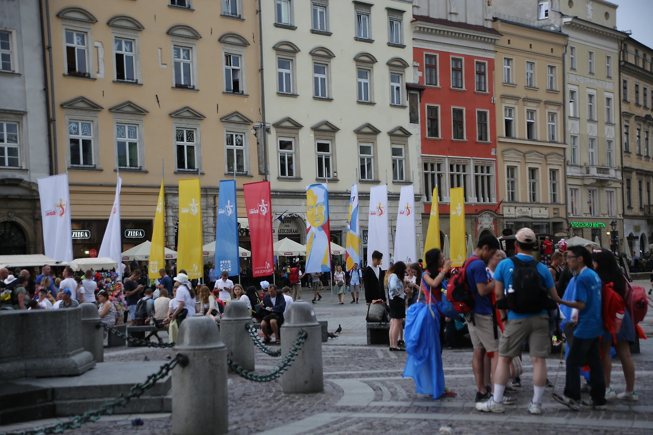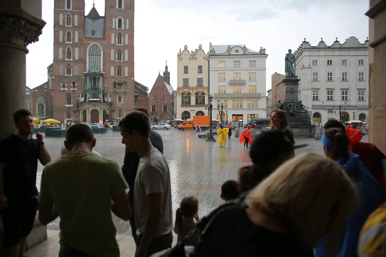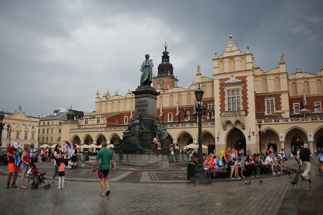 크라쿠프는 바르샤바로 수도를 옮기기 전 500년 간 정치문화의 중심지로 국왕이 살았던 도시이다. 세계 가톨릭 청년대회로 인해 유난히 많은 수녀님과 신부님을 볼 수 있었다. 시장광장 광장은 유럽에 남아 있는 중세 광장 중 이탈리아 베네치아 산마르코 광장 다음으로 넓다고 한다. 1220년에 건축된 르네상스 양식의 성 마리안 성당에서는 매시간 나팔수가 직접 나와 나팔을 분다. 광장 중앙에는 ‘폴란드의 셰익스피어’로 불리는 시인 아담 미츠키에비치의 동상이 서 있고 동상 뒤편은 직물 회관 (수키엔니체)이다.