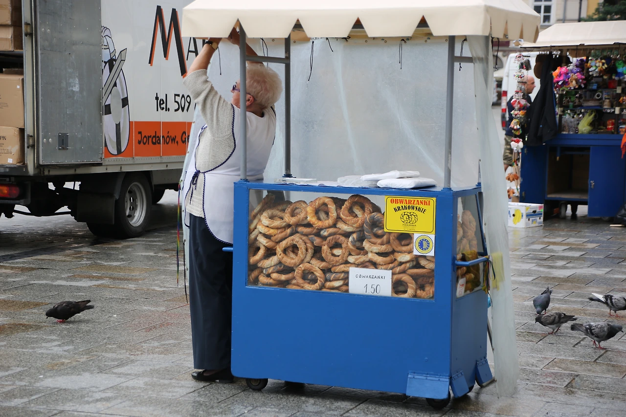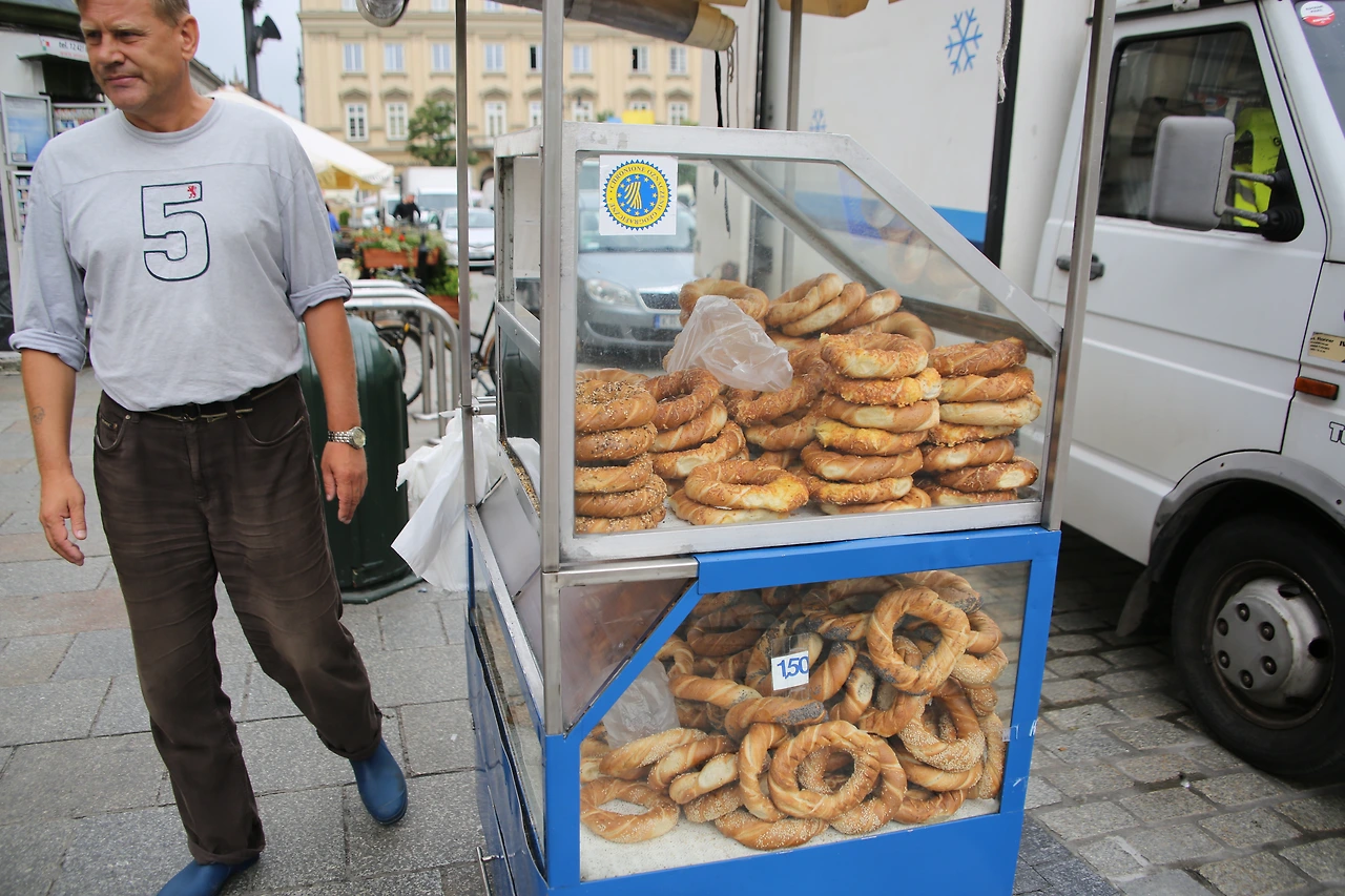 길거리 수레에서 베이글 비슷한 모양의 폴란드 전통 빵 오버르잔키(Obwarzanki)를 샀다. 치아 시드가 붙어있는 플레인과 치즈 맛을 샀는데 담백하고 고소하다. 손바닥 만한 크기의 빵 값은 450원, 갈수록 폴란드가 맘에 든다.