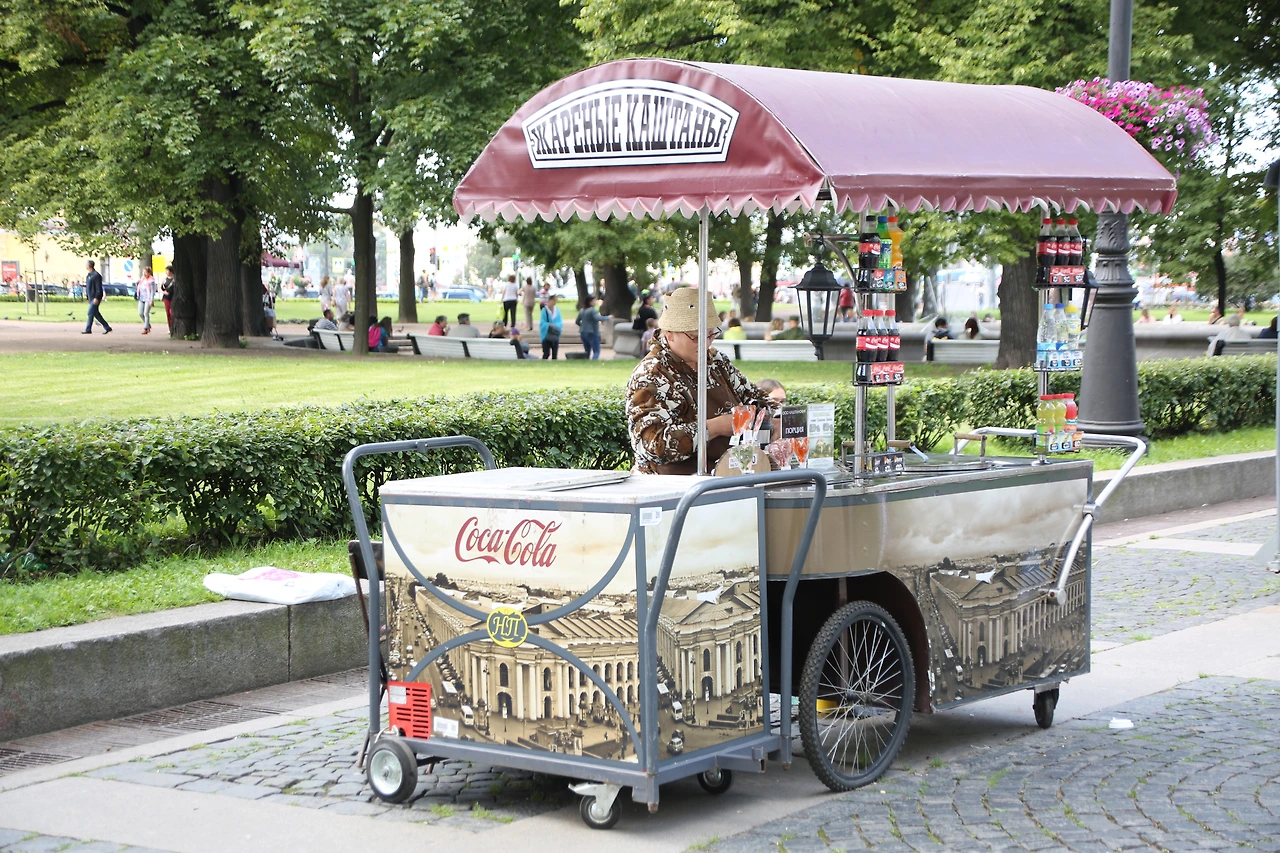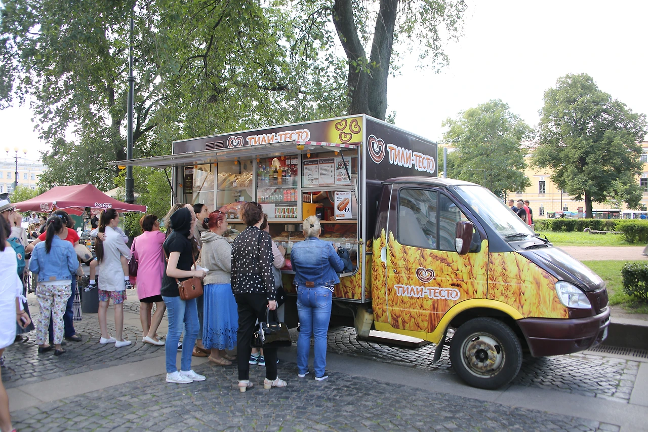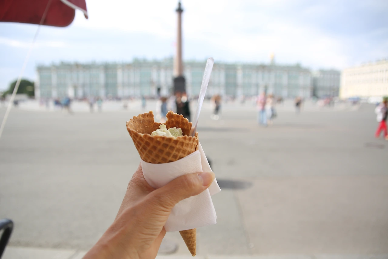 에르미타주 박물관에서 나와 네바강 선착장으로 가는 도중에는 이렇다 할 레스토랑이 없다. 사람들이 후드 트럭에 줄지어 서 있었다. 우리도 그들처럼 빵에 칠리소스와 머스터드를 듬뿍 뿌려진 소시지를 넣은 핫도그와 달달한 커피를 하나씩 사서 보도블록에 앉았다. 시장이 반찬이라고 매콤한 맛 외엔 별 특별하지 않은 빵을 순식간에 먹었다.